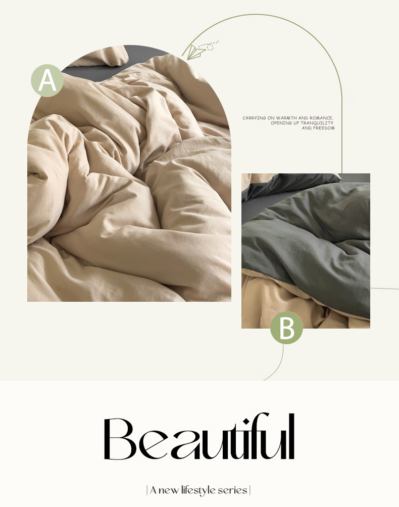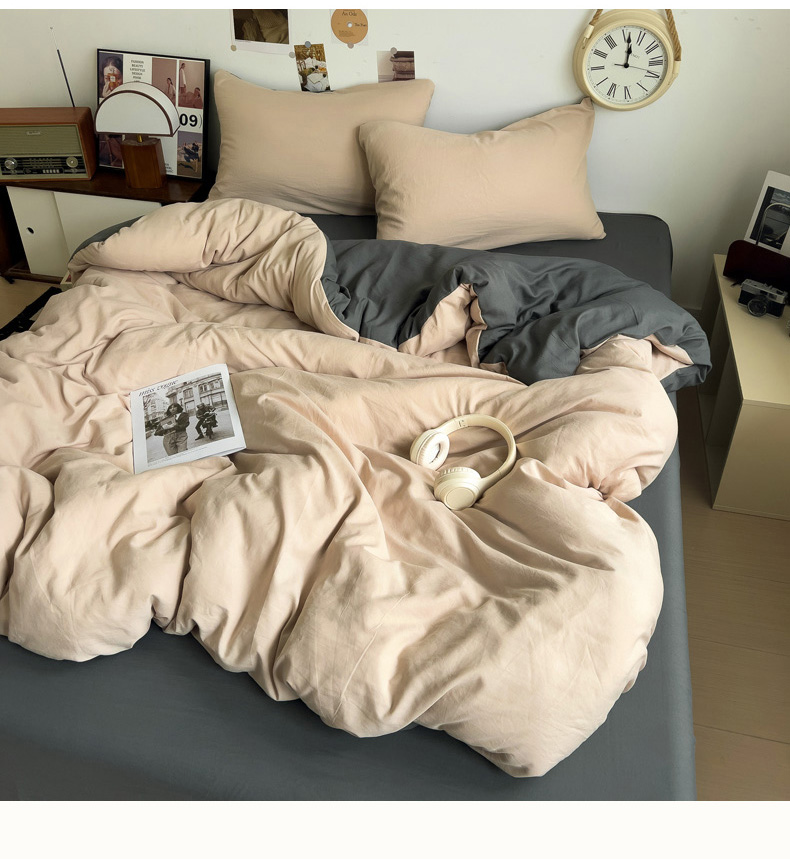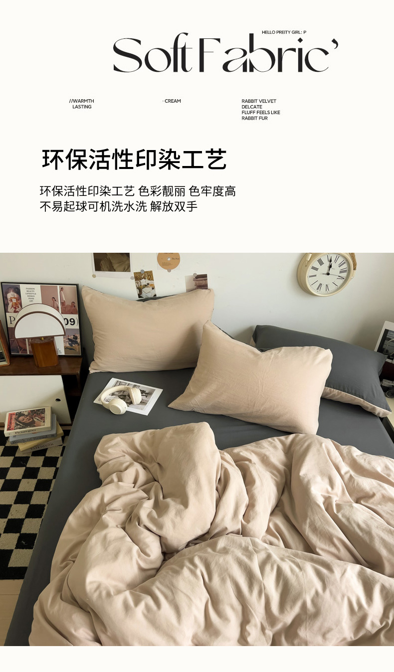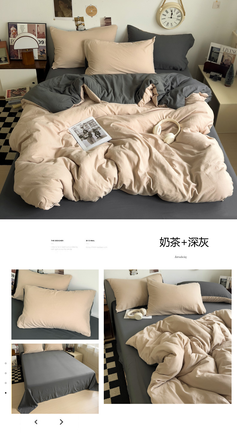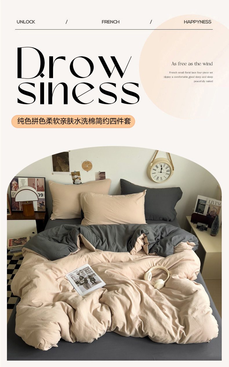 当前位置: 91家纺网 > 商品网购 > 床品套件 > 四件套 > 普通磨毛四件套 > 花伞家居 2025新款纯色拼色柔软亲肤水洗棉简约四件套 奶茶+深灰