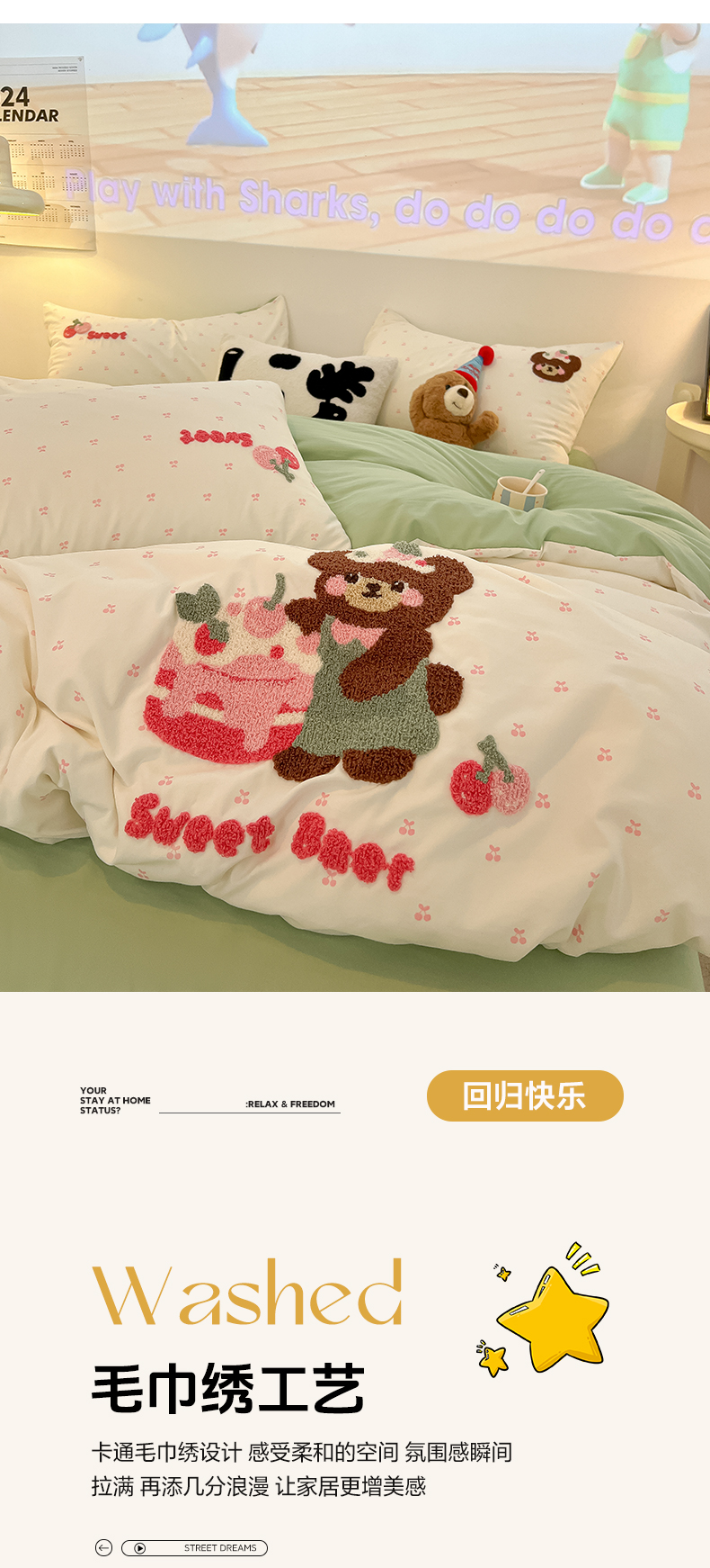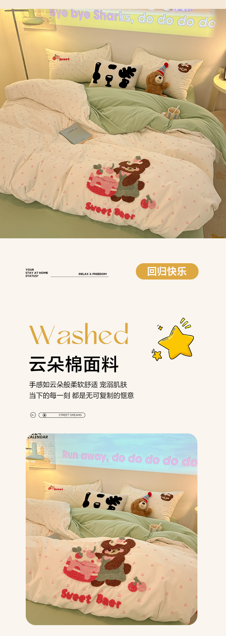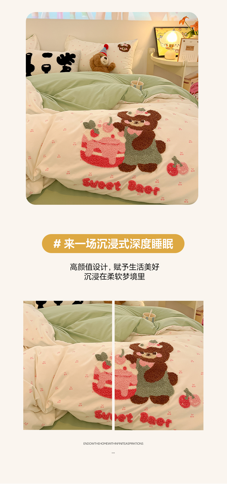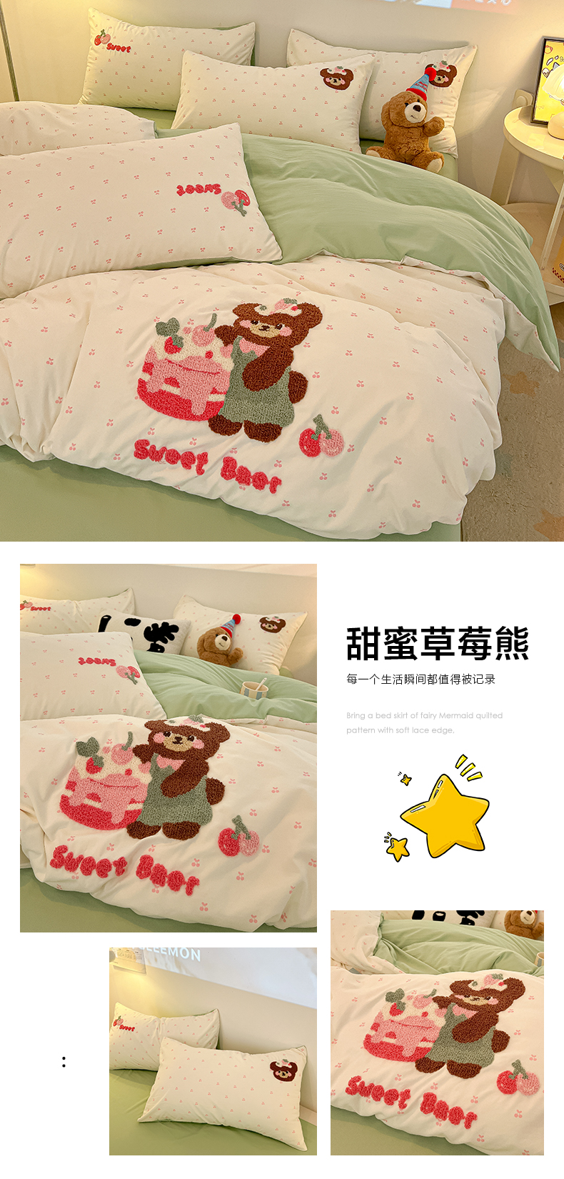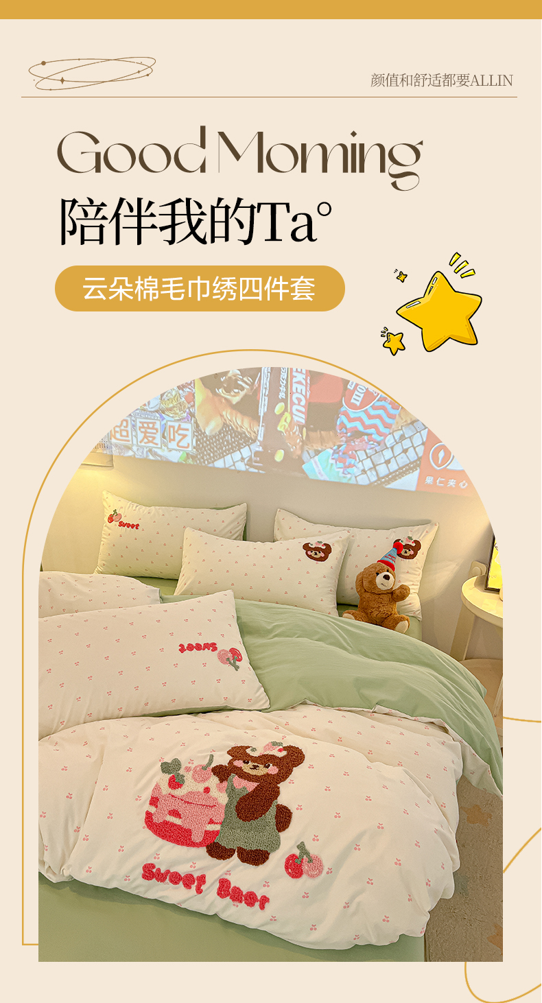 当前位置: 91家纺网 > 商品网购 > 床品套件 > 四件套 > 毛巾绣四件套 > 韩巢家纺 2025新款云朵棉可爱小猫咪毛巾绣被套床单床上用品四件套宿舍三件套(提供卖家秀) 甜蜜草莓熊
