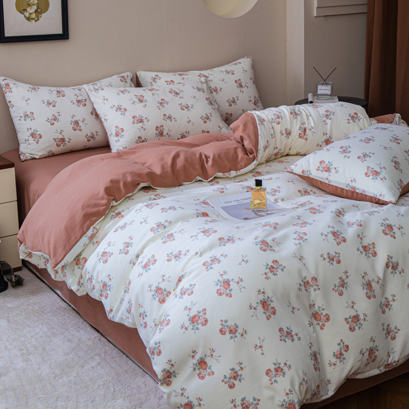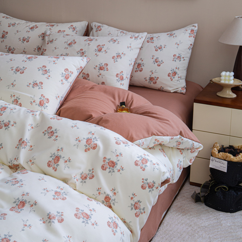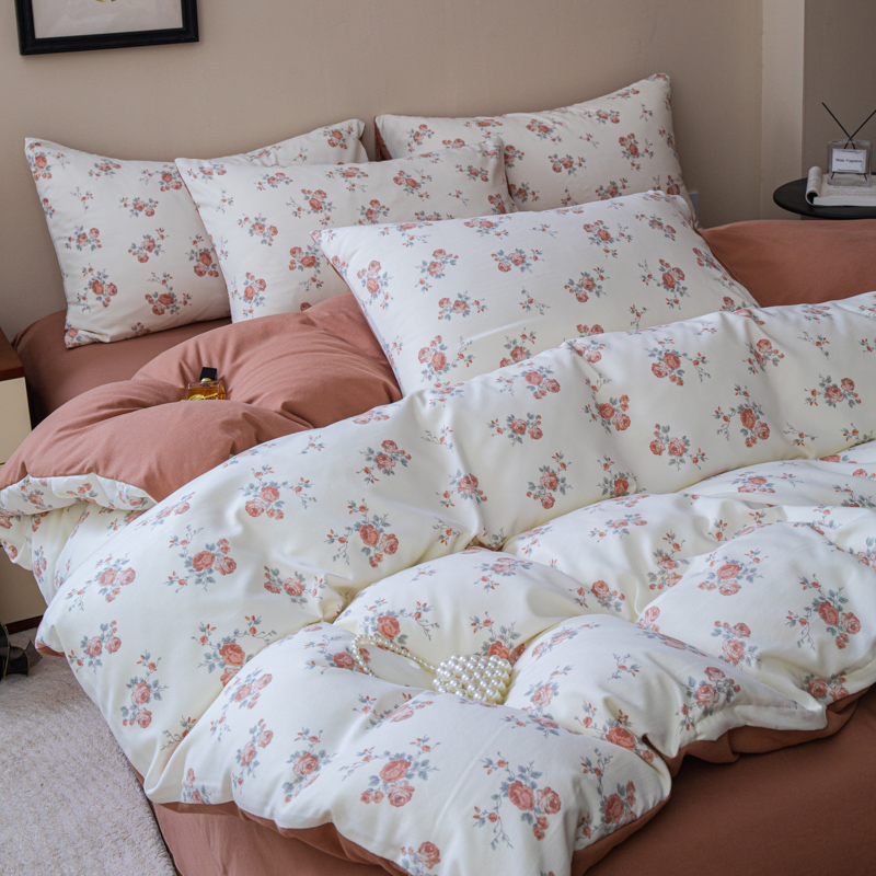 斯卡诺家纺 2025新款针织天竺棉水洗棉四件套被套学生宿舍三件套床单款 玫瑰庄园
