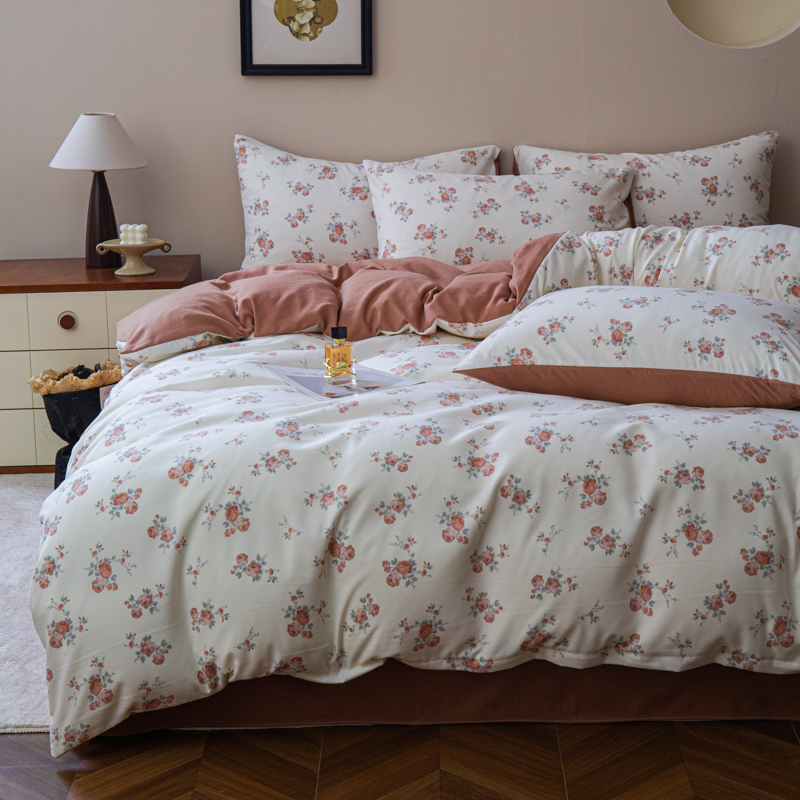 商品名称:斯卡诺家纺 2025新款针织天竺棉水洗棉四件套被套学生宿舍三件套床单款 玫瑰庄园