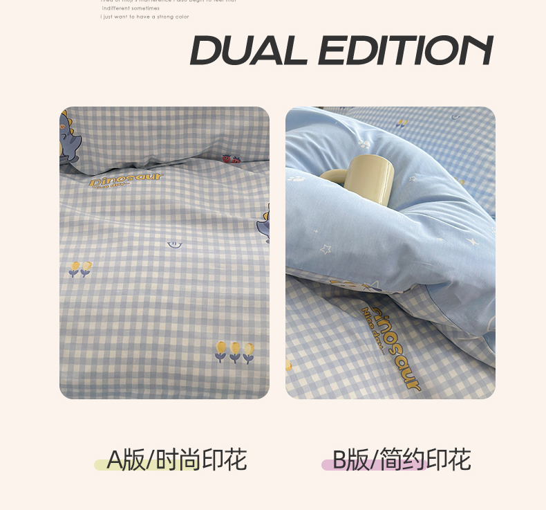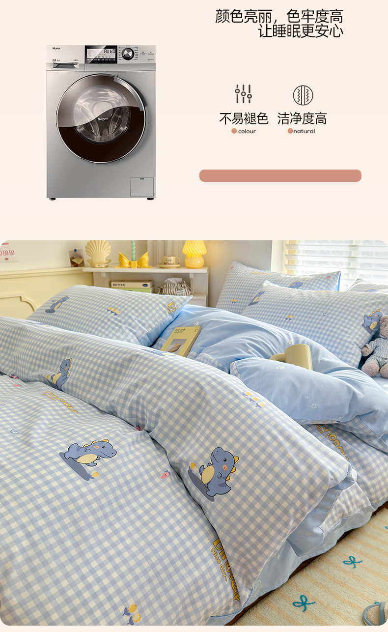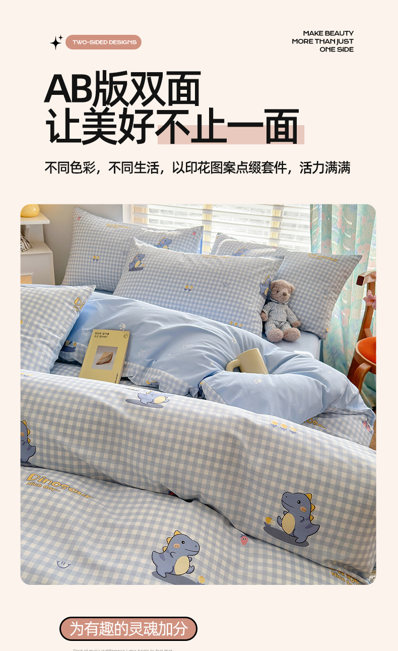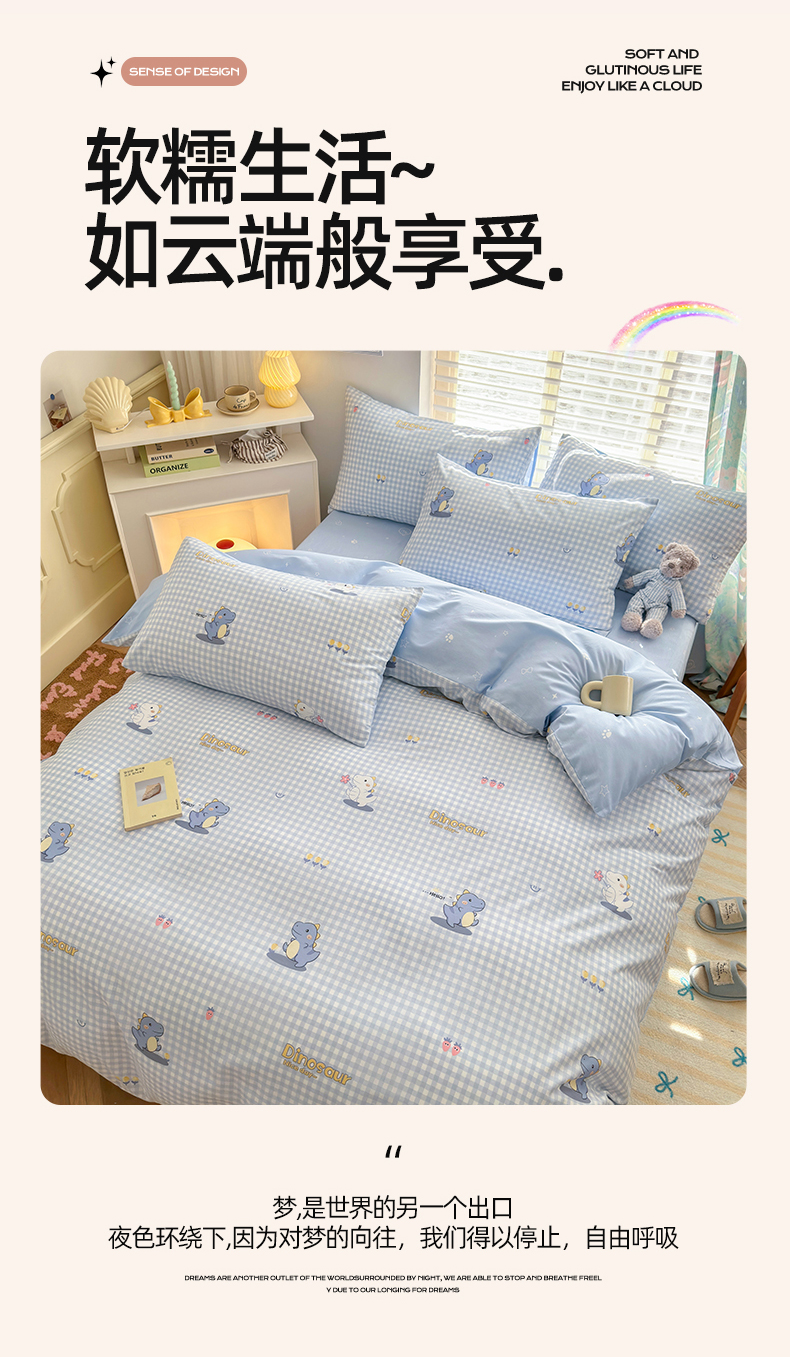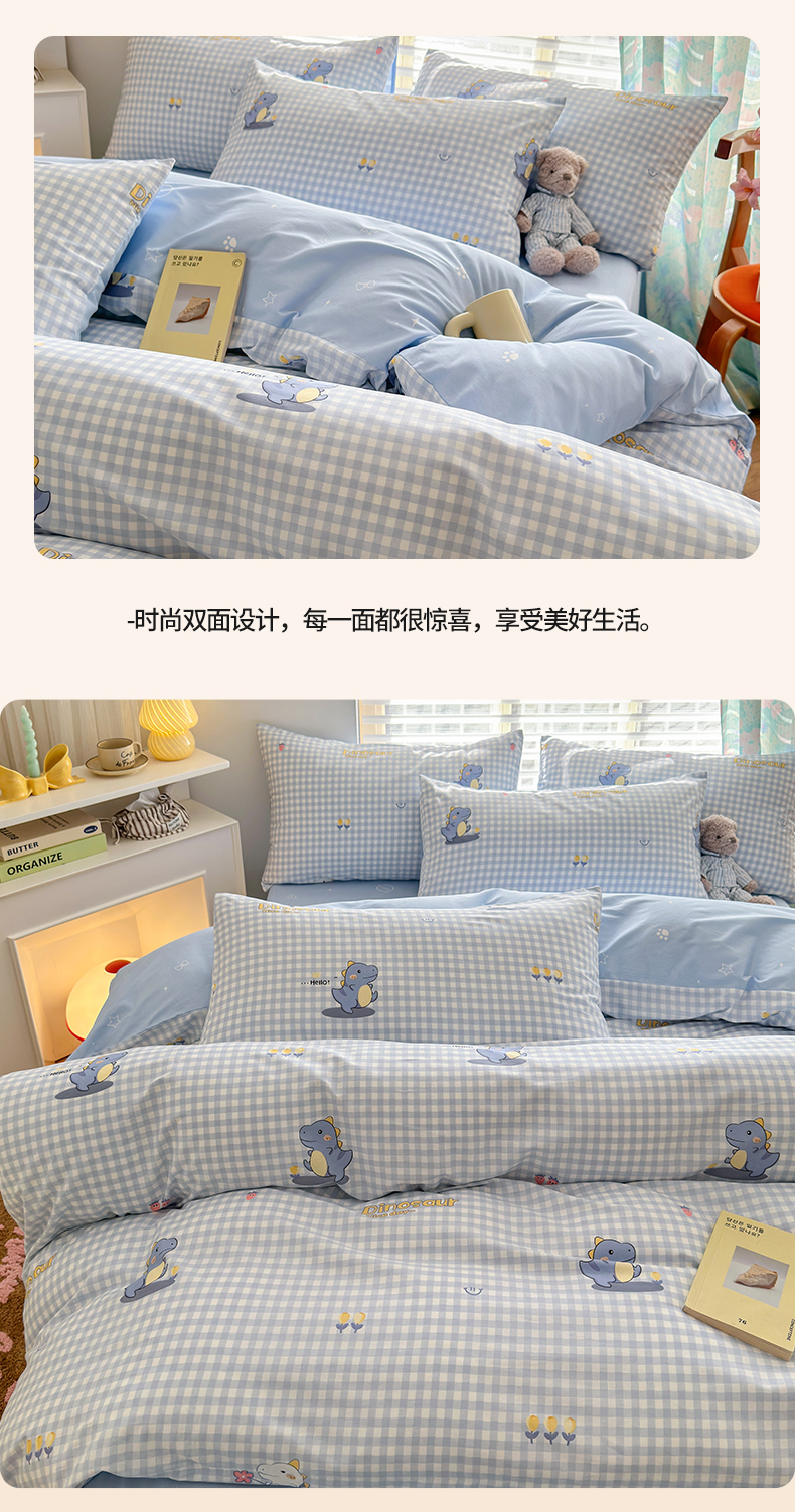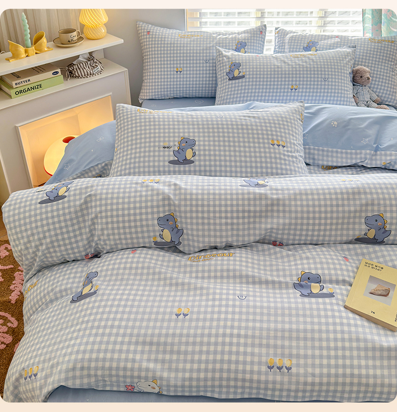 当前位置: 91家纺网 > 商品网购 > 床品套件 > 四件套 > 全棉普通四件套 > 名兮家居 2025年新款13372全棉印花四件套-卡通系列 格子恐龙