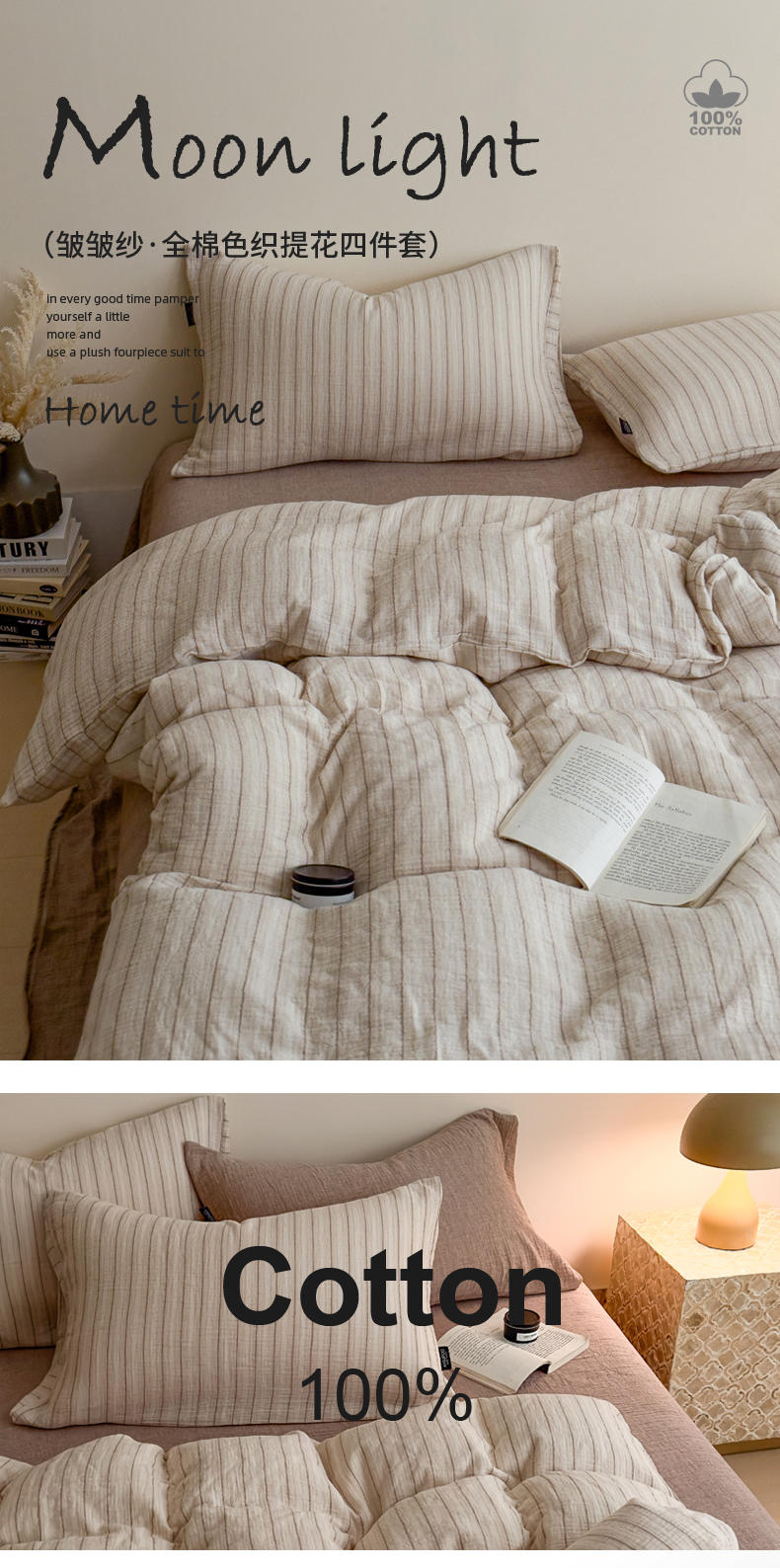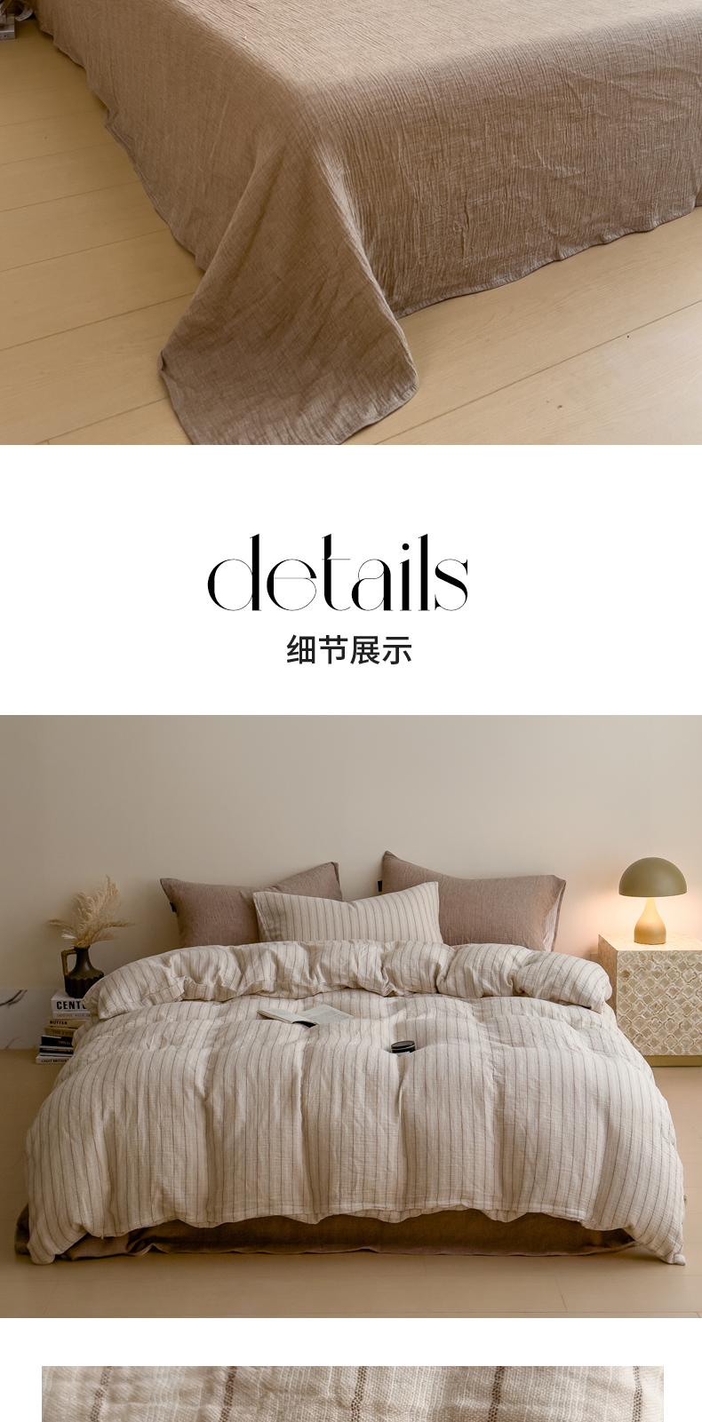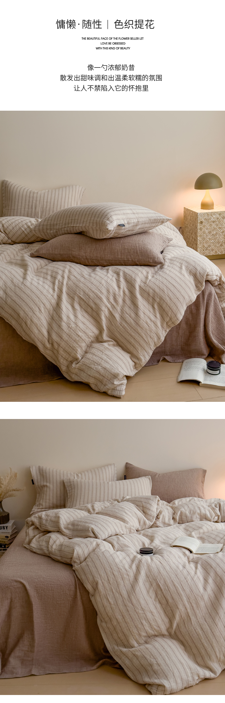 当前位置: 91家纺网 > 商品网购 > 床品套件 > 四件套 > 全棉普通四件套 > 席世家条纹皱皱纱-午逅 午逅-浅咖