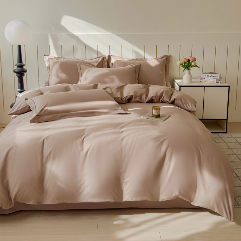 2025新款40长绒棉13372全棉纯色酒店宾馆民宿学生三件套单品被套(可定制)摩卡