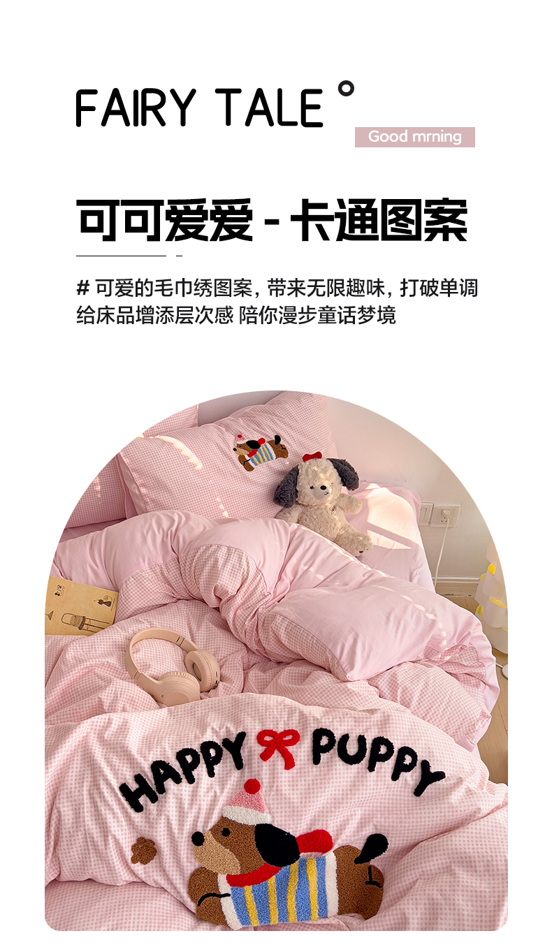 当前位置: 91家纺网 > 商品网购 > 床品套件 > 四件套 > 水洗棉四件套 > 逸尚阁 2025新款腊肠狗睡衣熊毛巾绣水洗棉四件套【提供买家秀】 腊肠狗-粉格