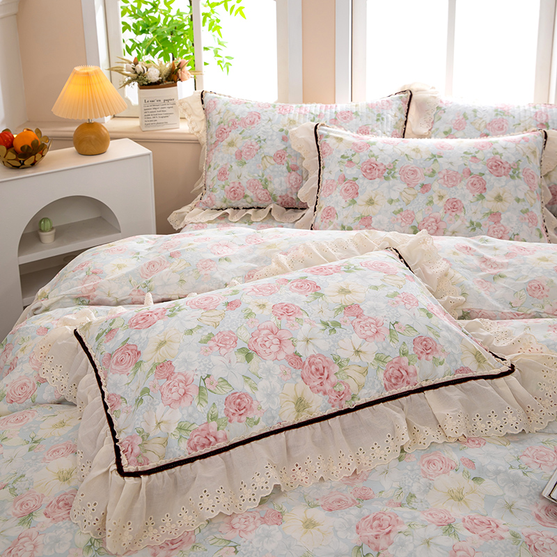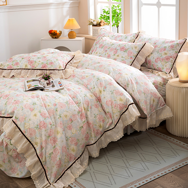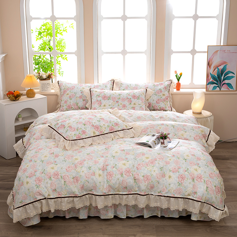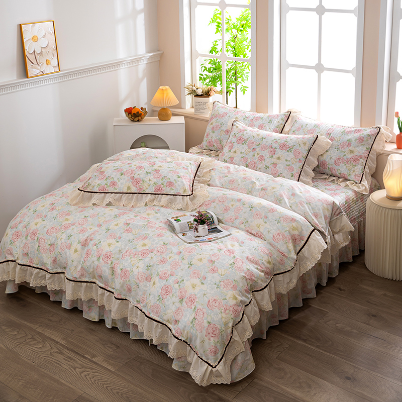 当前位置: 91家纺网 > 商品网购 > 床品套件 > 四件套 > 全棉普通四件套 > 木兰花 2025新款欧式全棉印花韩版花边夹棉床盖床裙款四件套【控价288元起】 迷迭香