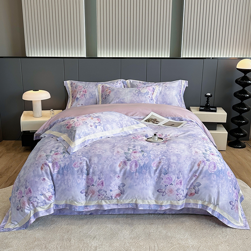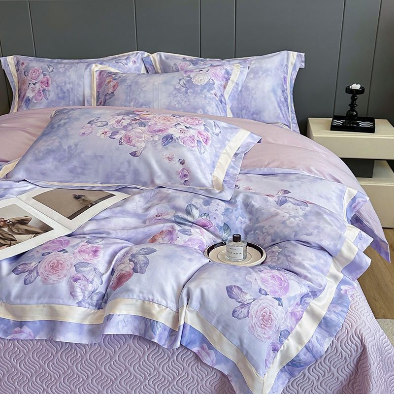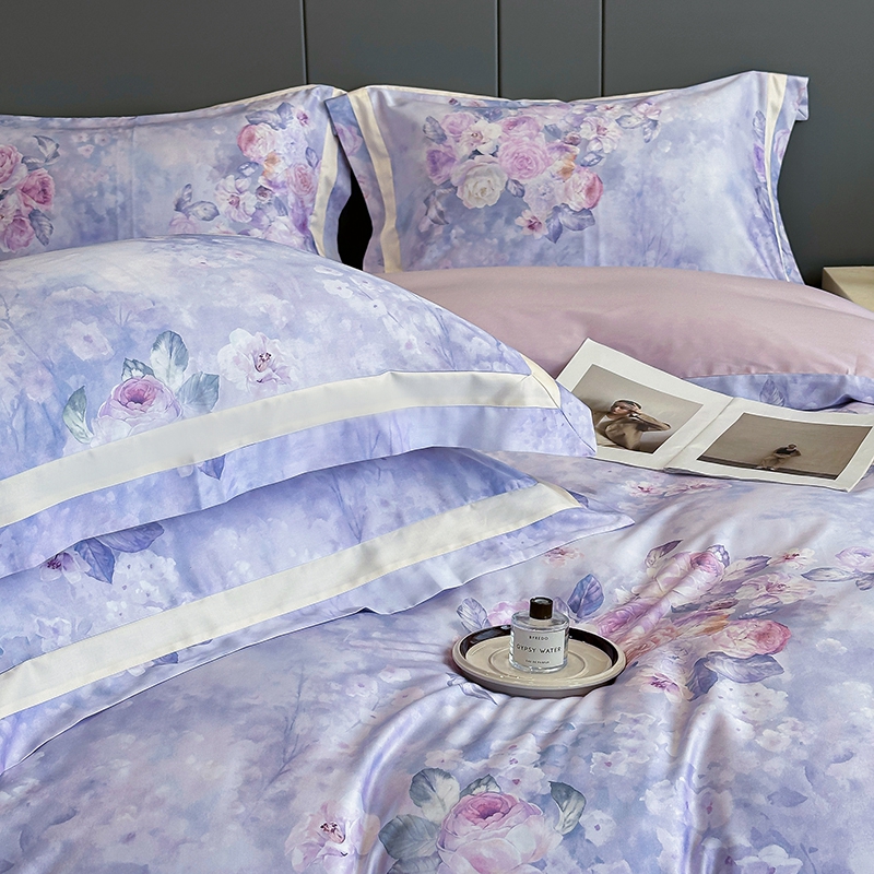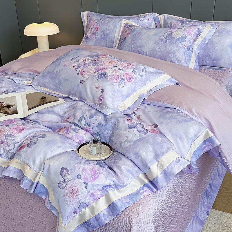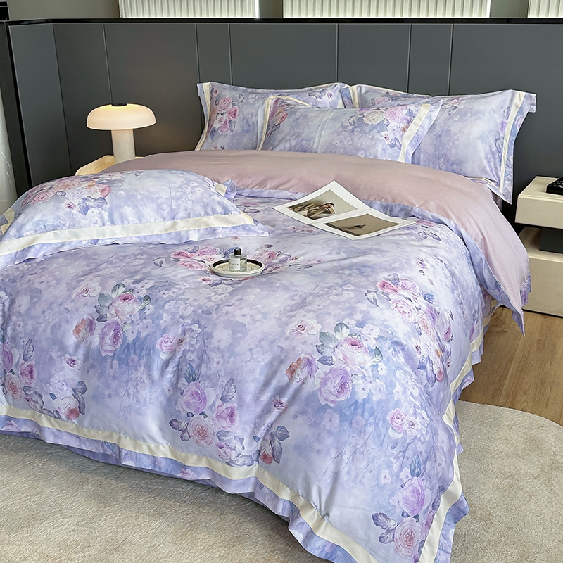 佳汐蓝家纺 2025新款天丝棉数码印花床盖款四件套 花海清梦 紫