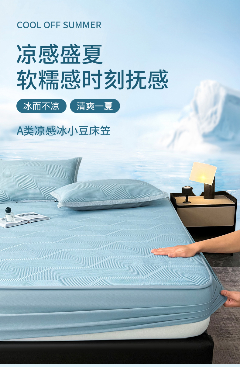 商品名称:阿牛席业2025新款凉感软席系列-D-凉感豆豆提花床笠 爱巢-蓝
