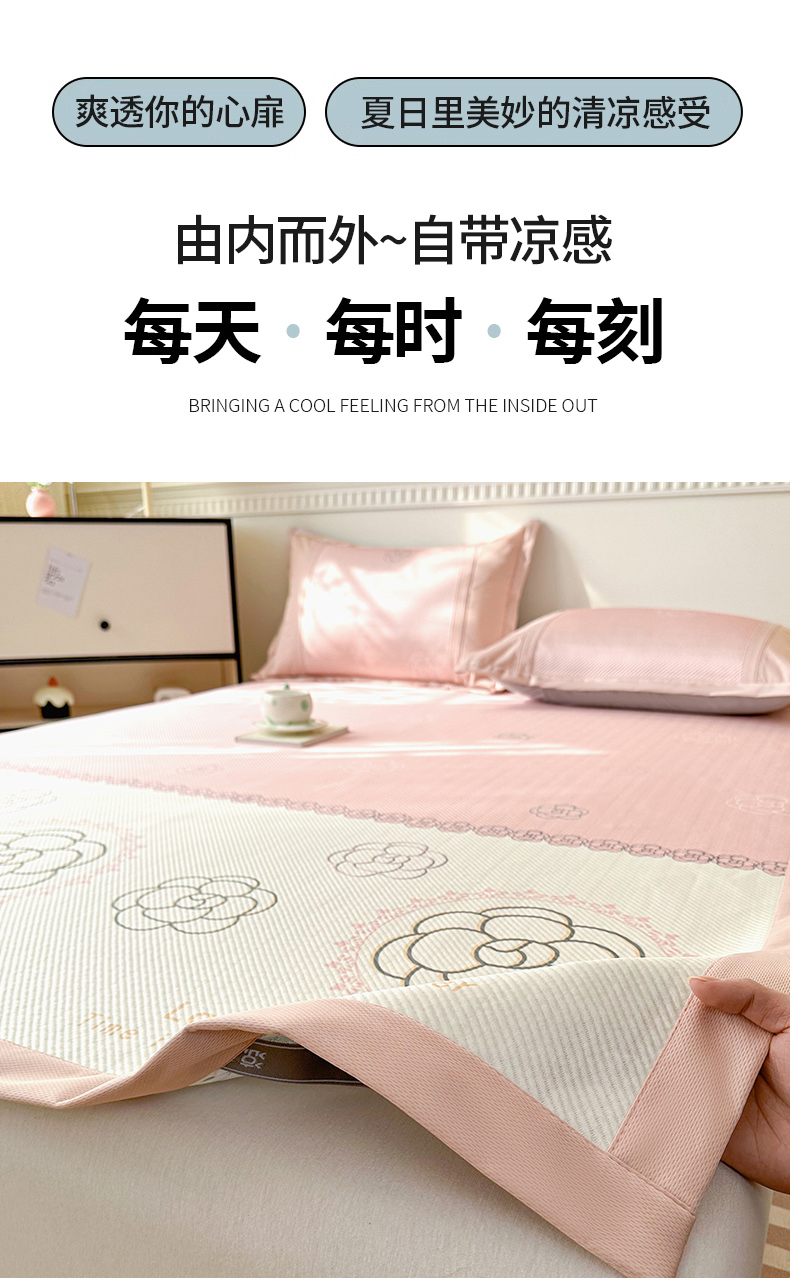 (总)阿牛席业 2025新款冰藤凉席系列冰藤绣花韵雅席,韵雅-粉,韵雅-粉床笠款,韵雅-灰,韵雅-灰床笠款,韵雅-蓝,韵雅-蓝床笠款