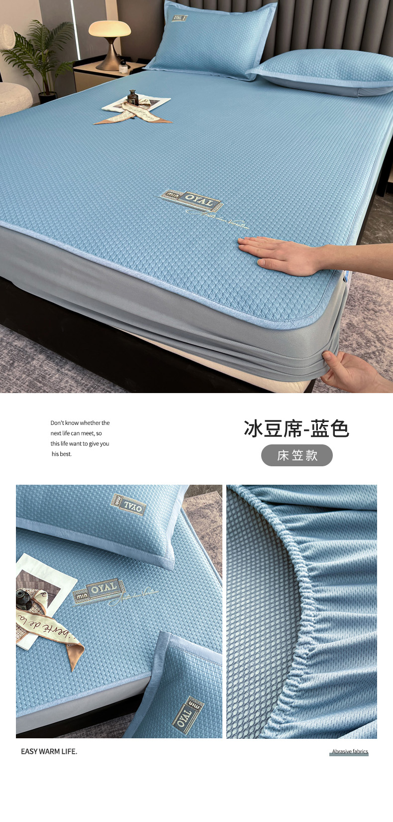 (总)阿牛席业2025新款冰藤凉席系列冰藤清爽床笠席,清爽-蓝【床笠款】,清爽-咖【床笠款】