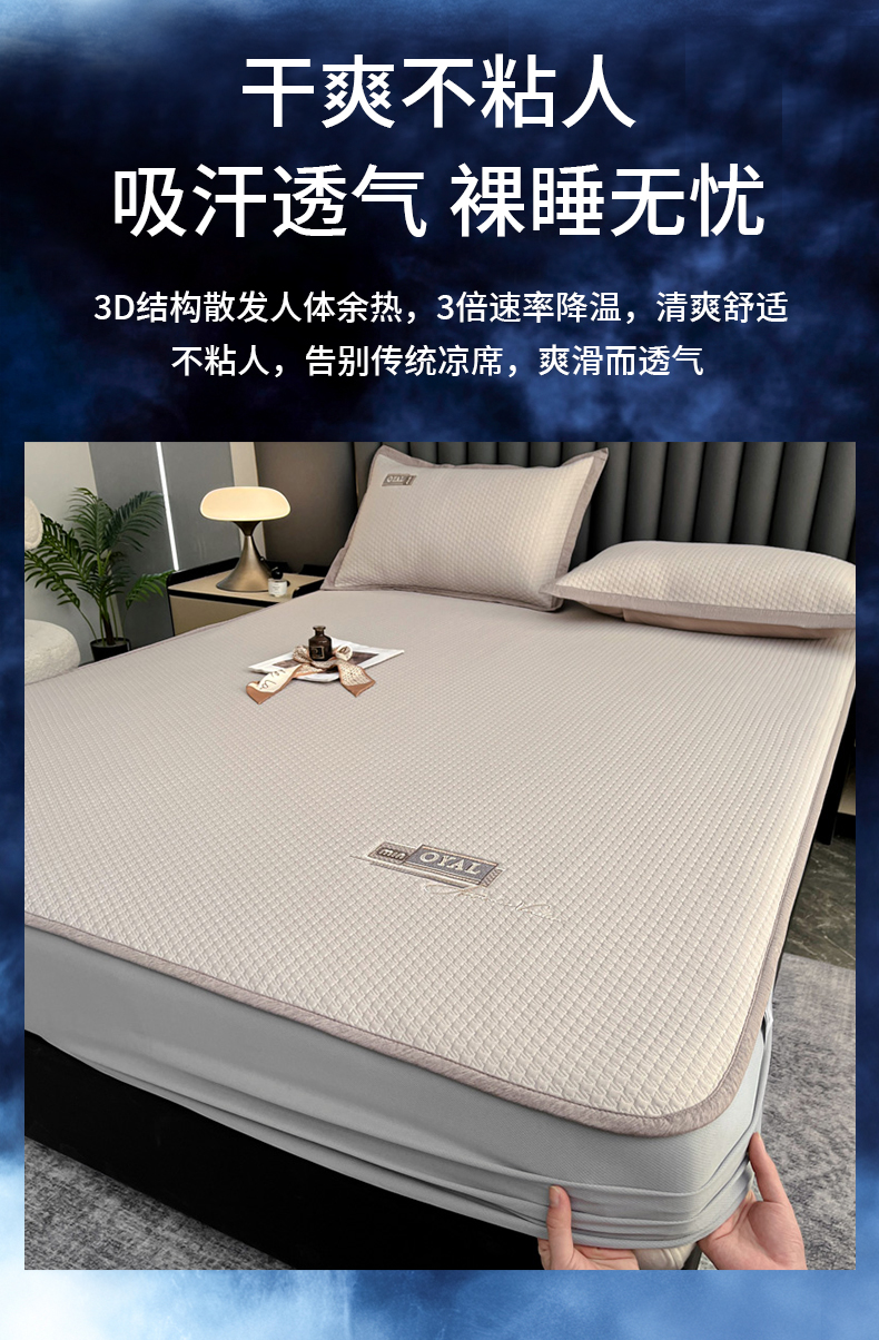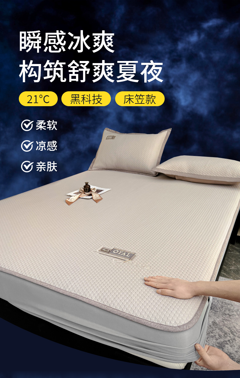 阿牛席业2025新款凉感软席系列-A-凉感冰豆席 冰豆席-香槟床笠款