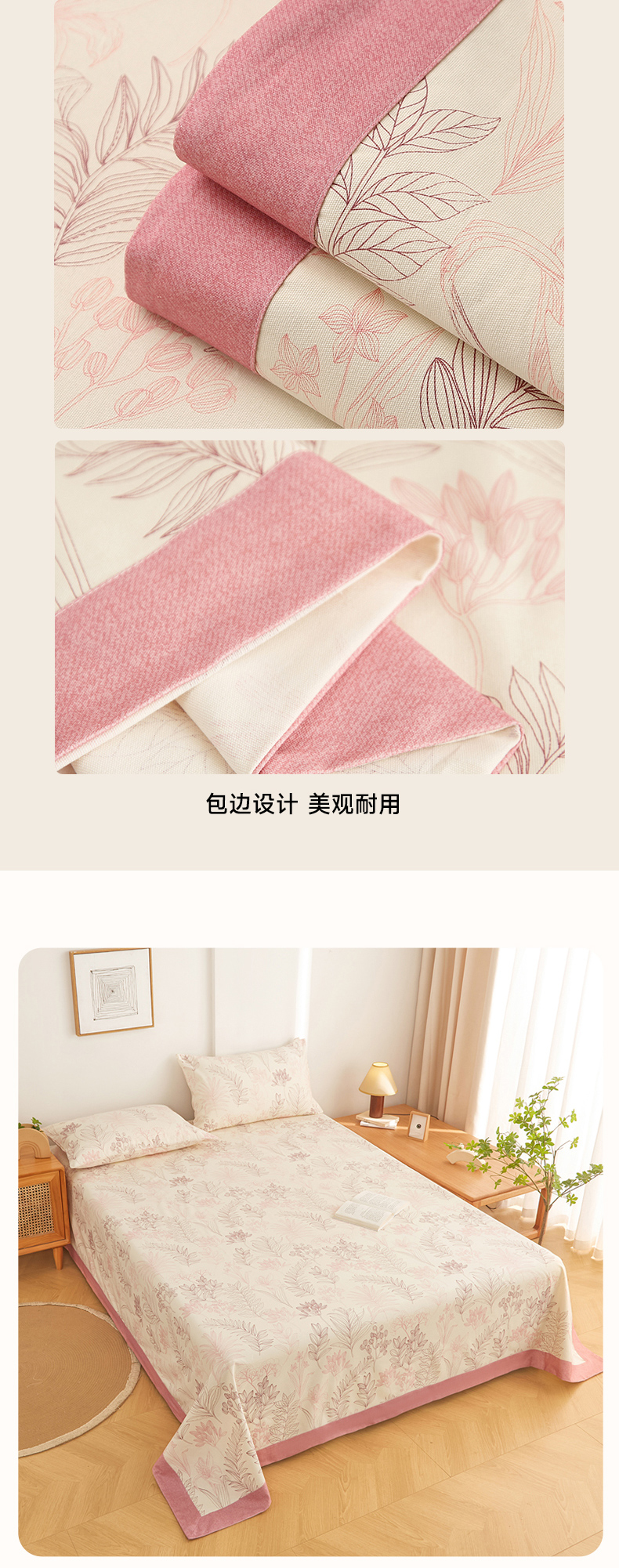 (总)慕梵家居2025新款A类100%全棉磨毛包边床单纯棉宽边单床单,繁花藤叙,红色玫瑰,暮秋鎏金,石榴花红,石榴花灰,硕果累累,甜梦茶语