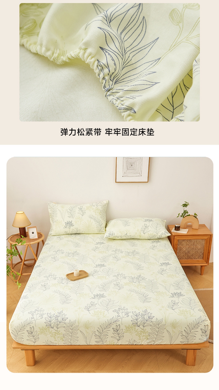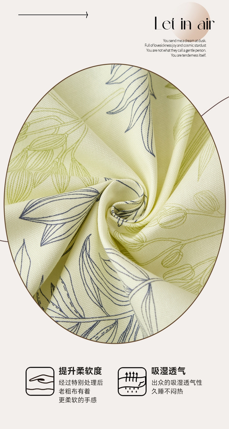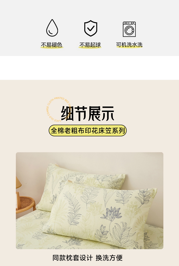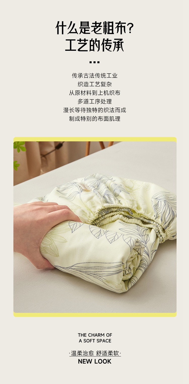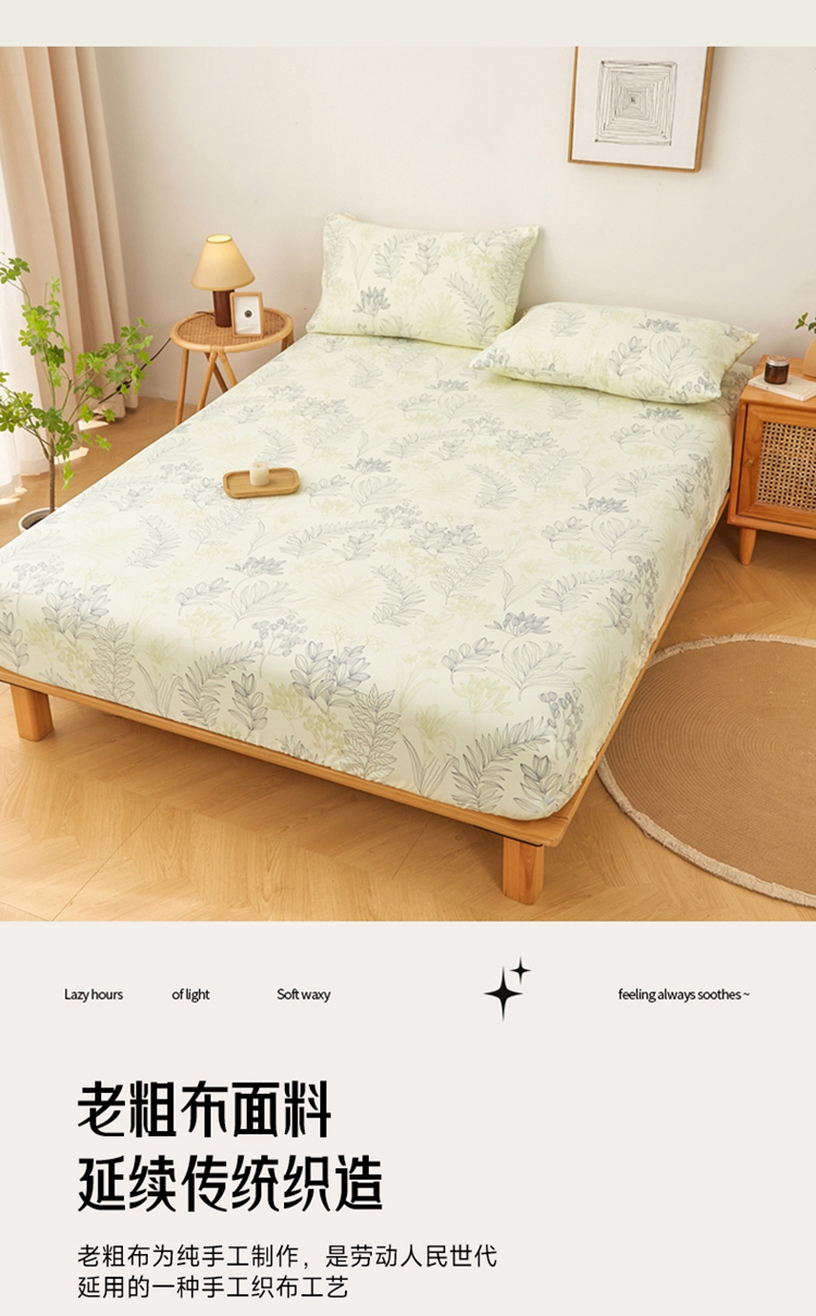 商品名称:慕梵家居 2025新款全棉老粗布床笠系列 全棉老粗布-繁花绿