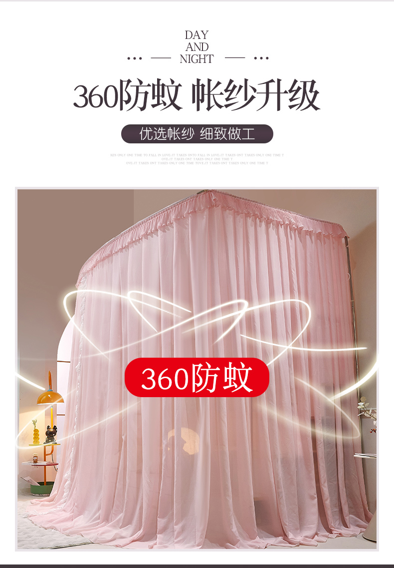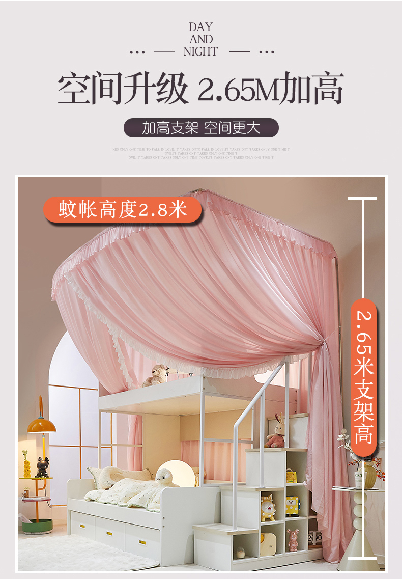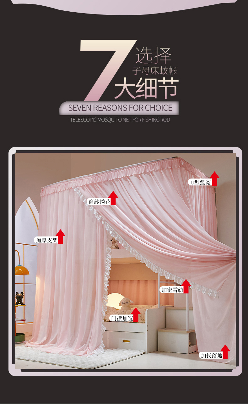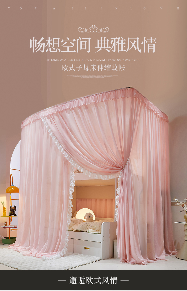商品名称:夏彩 2025新款雪纺子母一体式伸缩蚊帐-88623 88623-蔷薇粉