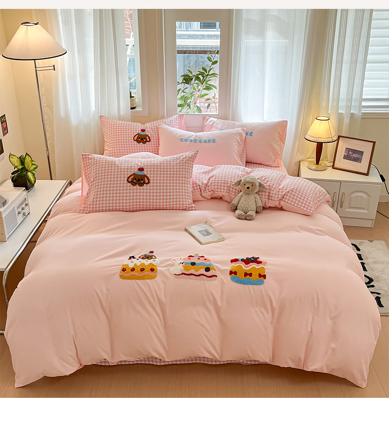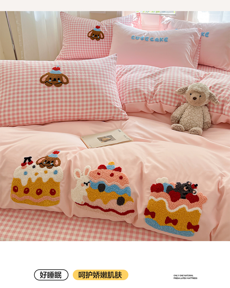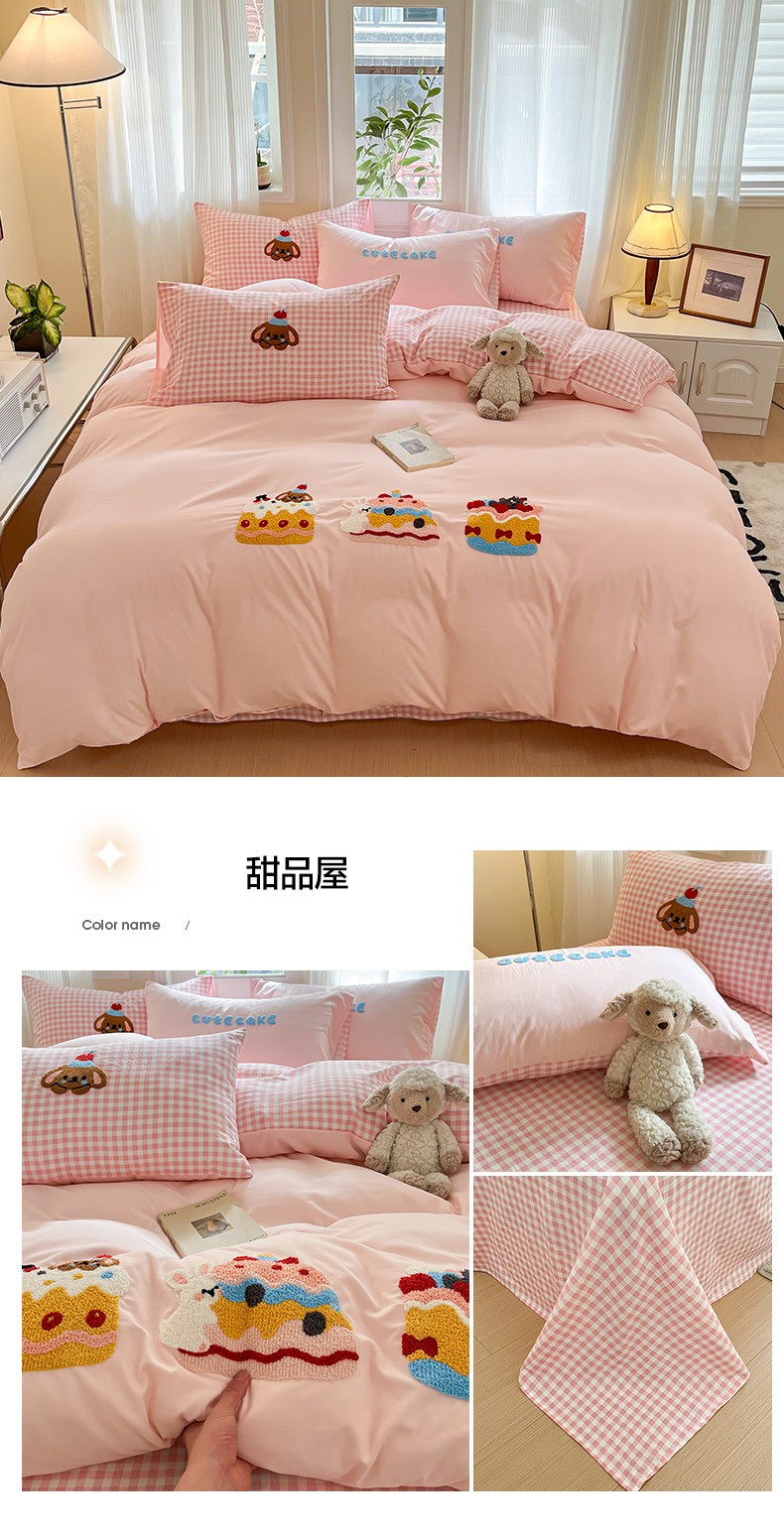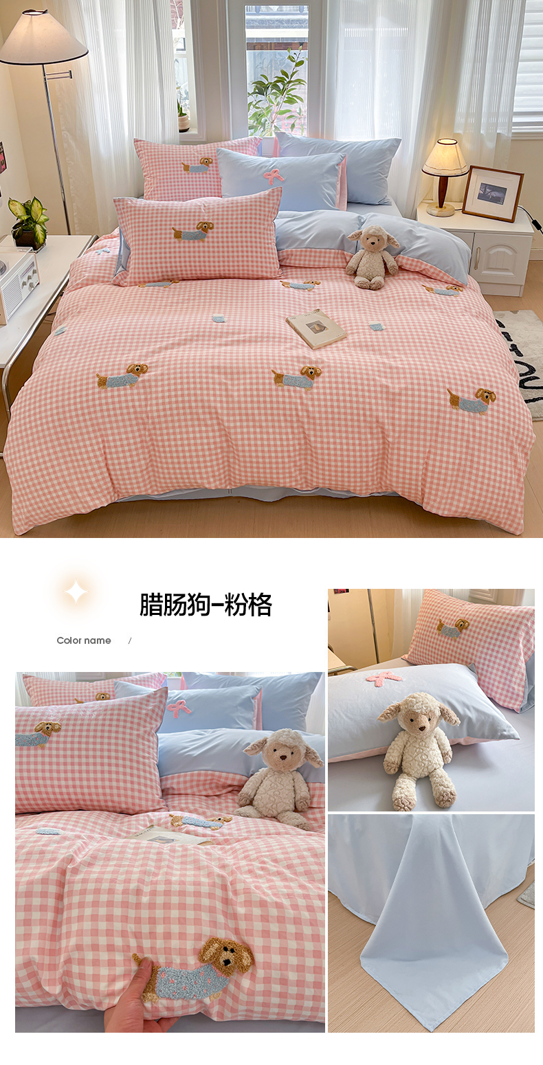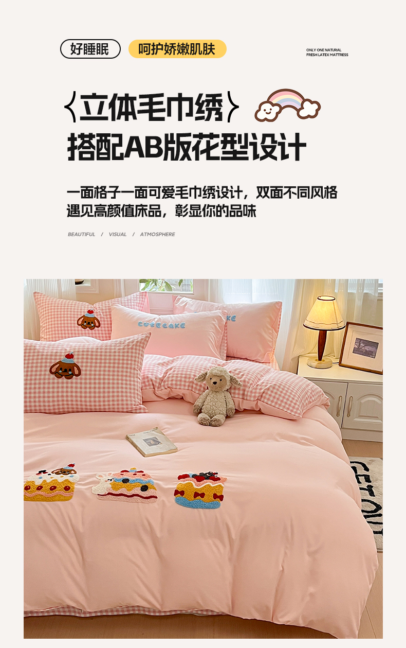 (总)宇航家纺 2025新款云朵棉卡通毛巾绣四件套,蛋糕猫—粉格,蝴蝶结KT—粉色,蝴蝶结KT—咖色,腊肠狗—粉格,腊肠狗—咖色,腊肠狗—蓝格,蓝格蛋糕KT,甜品屋