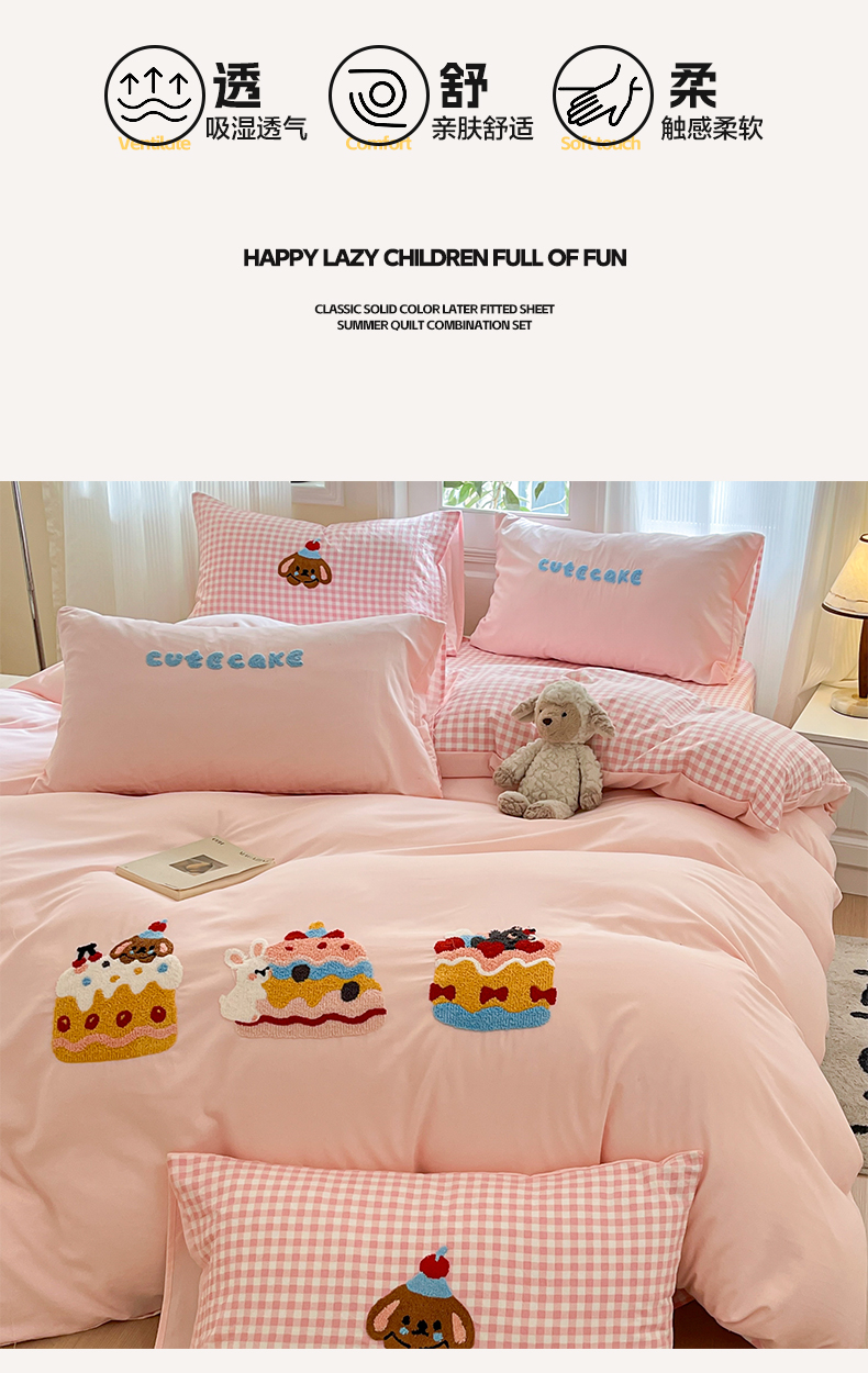 (总)宇航家纺 2025新款云朵棉卡通毛巾绣夏被单品四件套,XB蝴蝶结KT-粉格,XB蛋糕猫-粉格,XB蝴蝶结KT-咖,XB腊肠狗-粉格,XB腊肠狗-咖,XB腊肠狗-蓝格,XB蓝格蛋糕KT,XB甜品屋