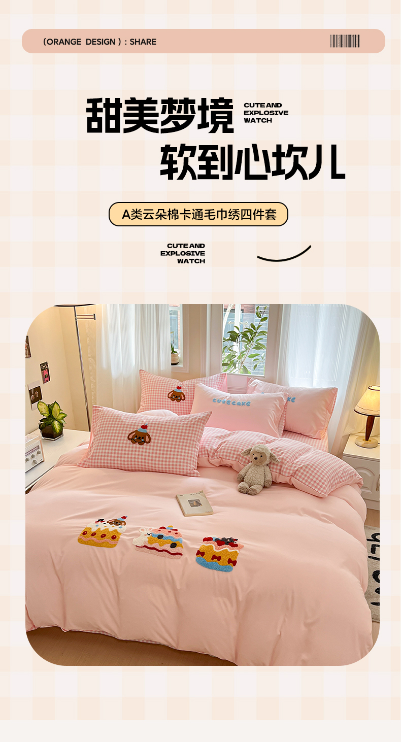 商品名称:(总)宇航家纺 2025新款云朵棉卡通毛巾绣四件套