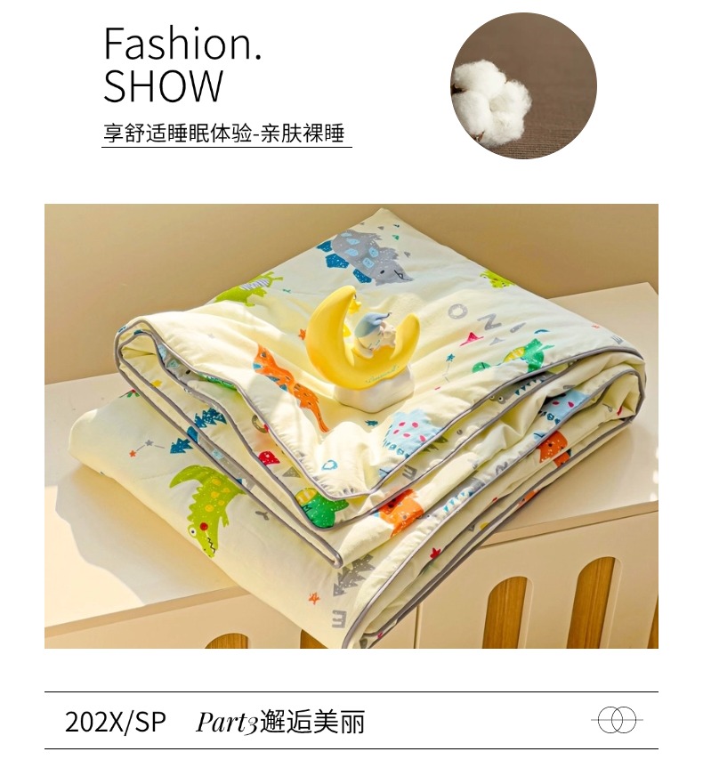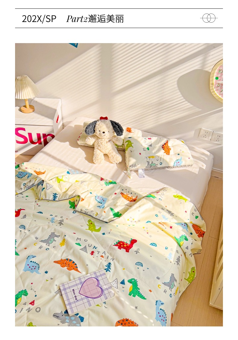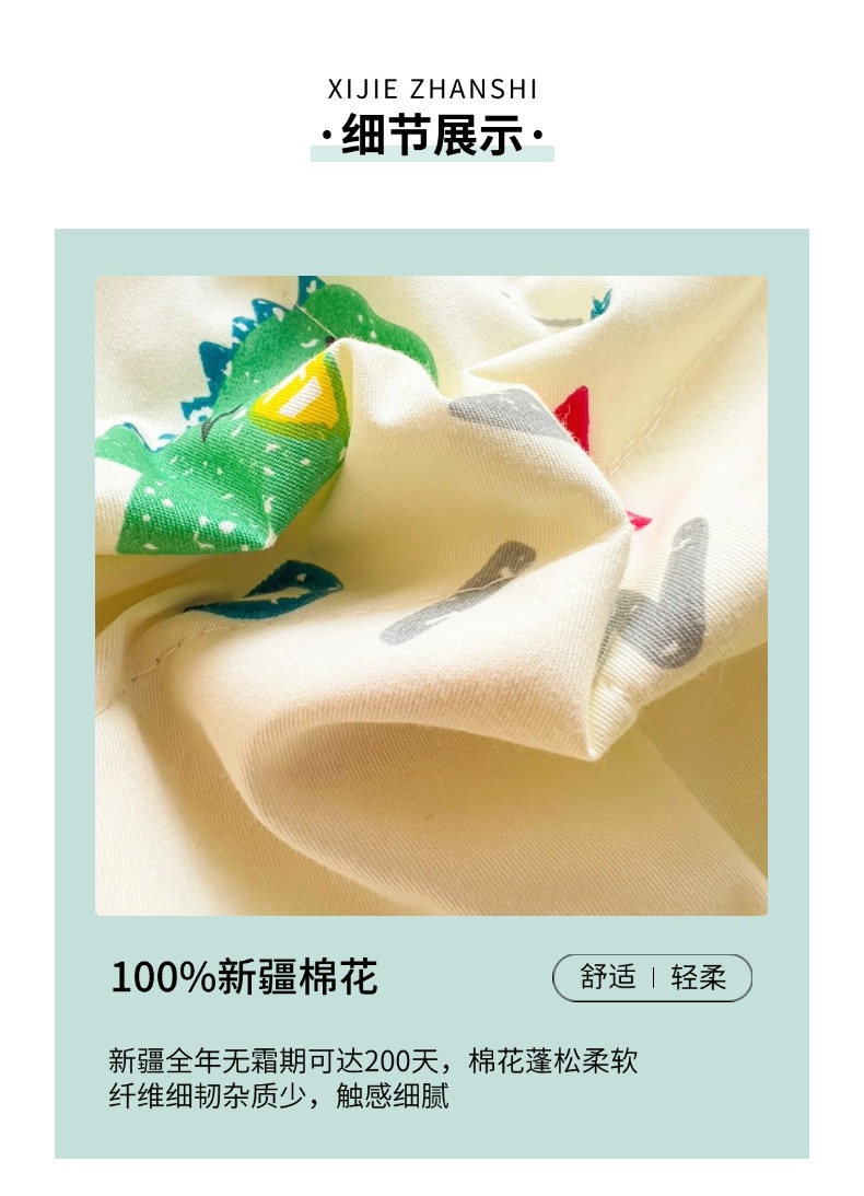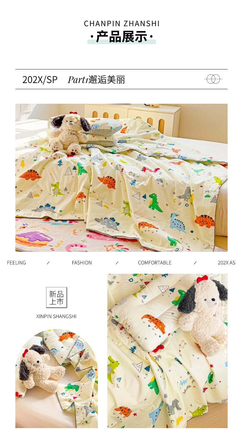 商品名称:十九色 2025新款全棉13372ins儿童夏被 小恐龙