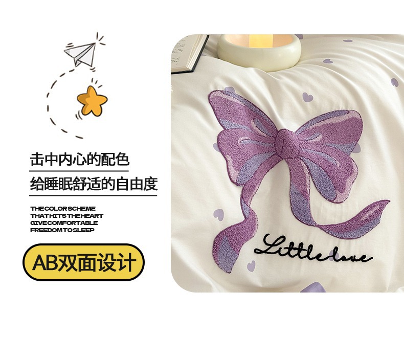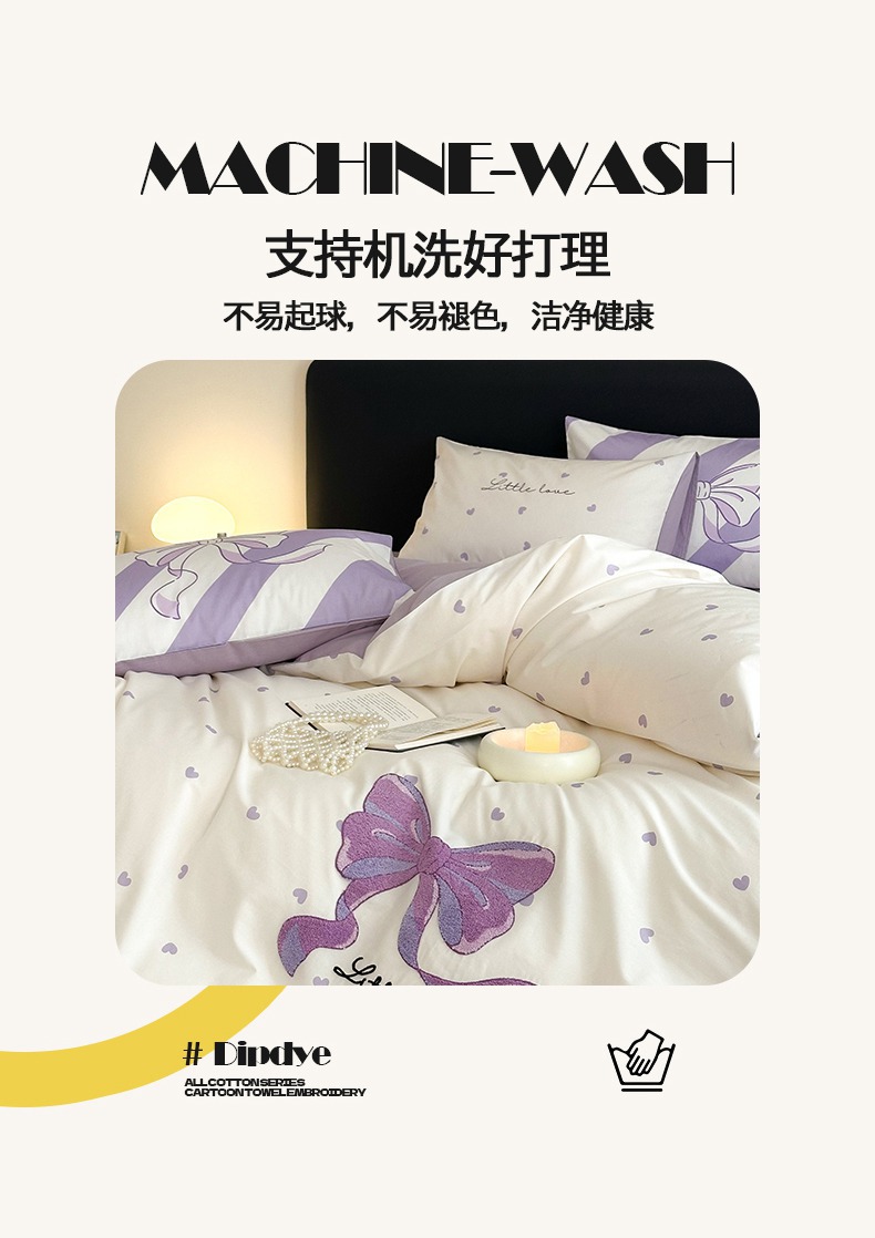 典曼家纺 2025新款印花毛巾绣四件套系列 紫色心情