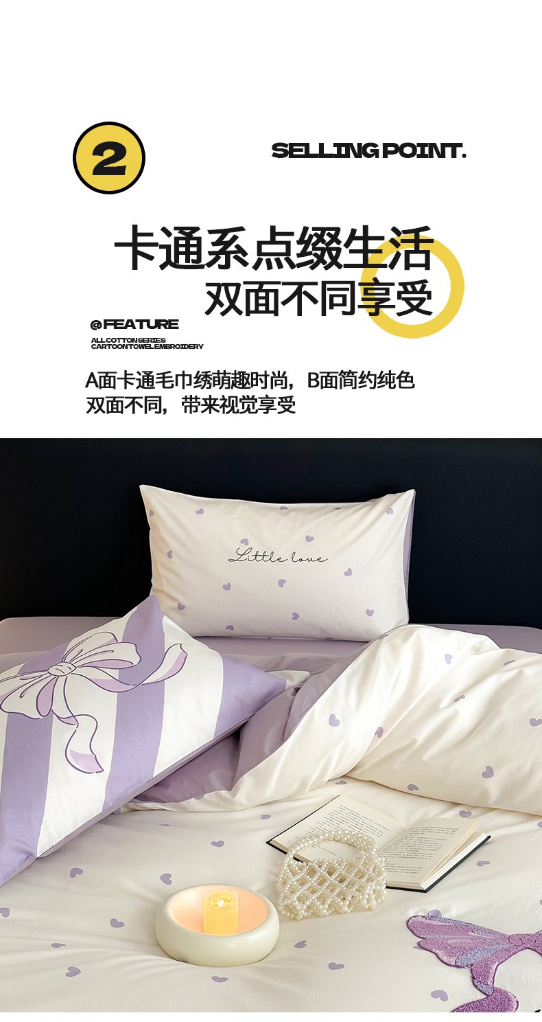商品名称:典曼家纺 2025新款印花毛巾绣四件套系列 紫色心情
