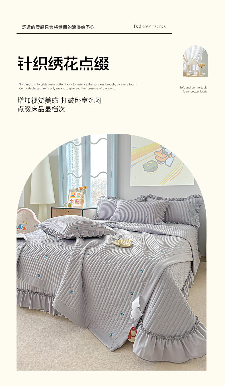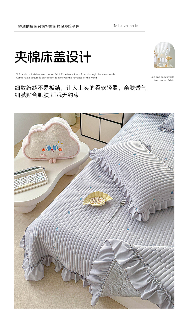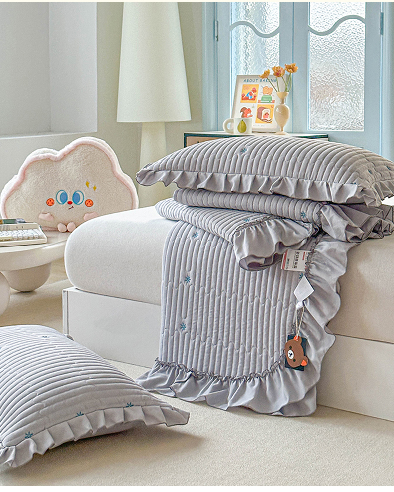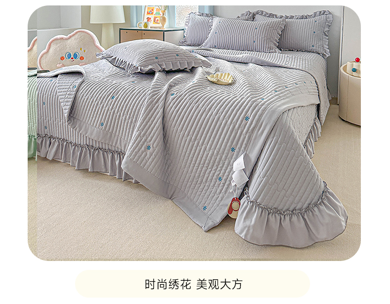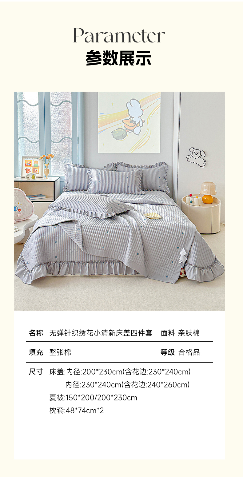 当前位置: 91家纺网 > 商品网购 > 床上用品 > 床盖 > 源舜家纺 2025新款无弹针织绣花小清新床盖夏被四件套 灰色