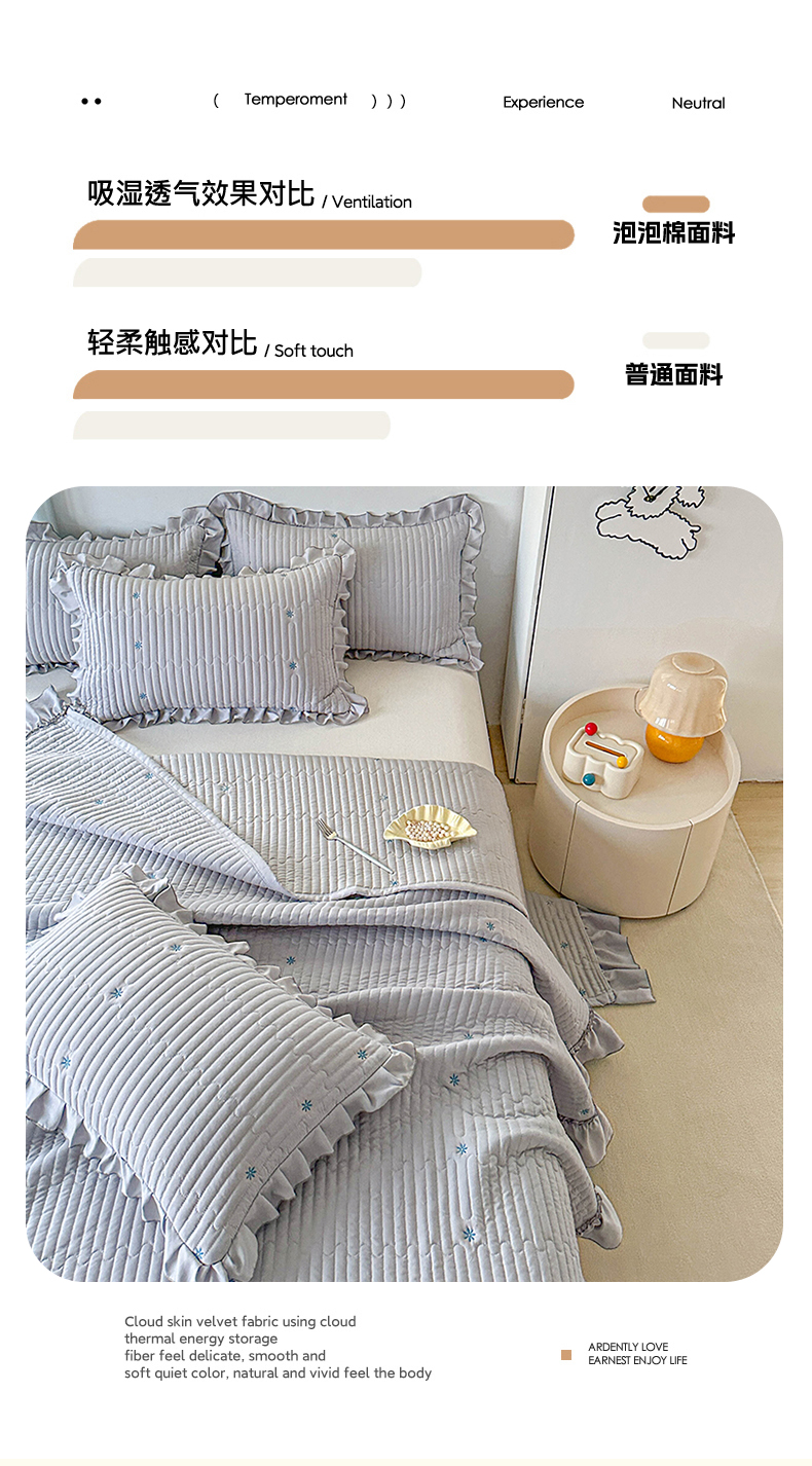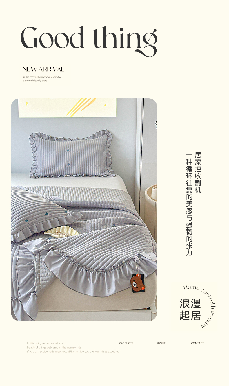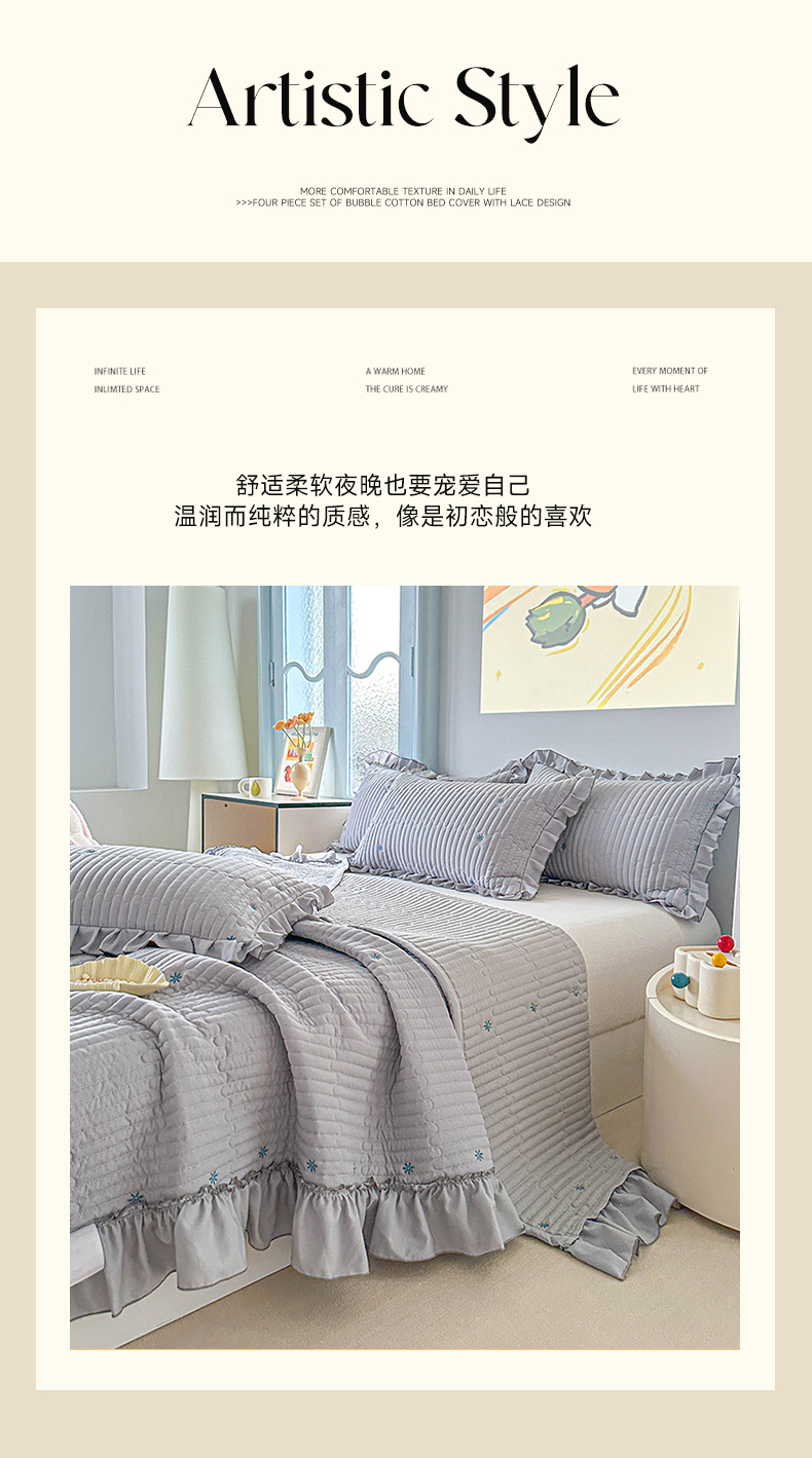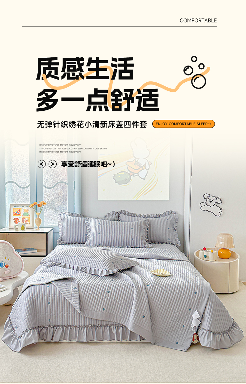 当前位置: 91家纺网 > 商品网购 > 床上用品 > 床盖 > 源舜家纺 2025新款无弹针织绣花小清新床盖夏被四件套 灰色