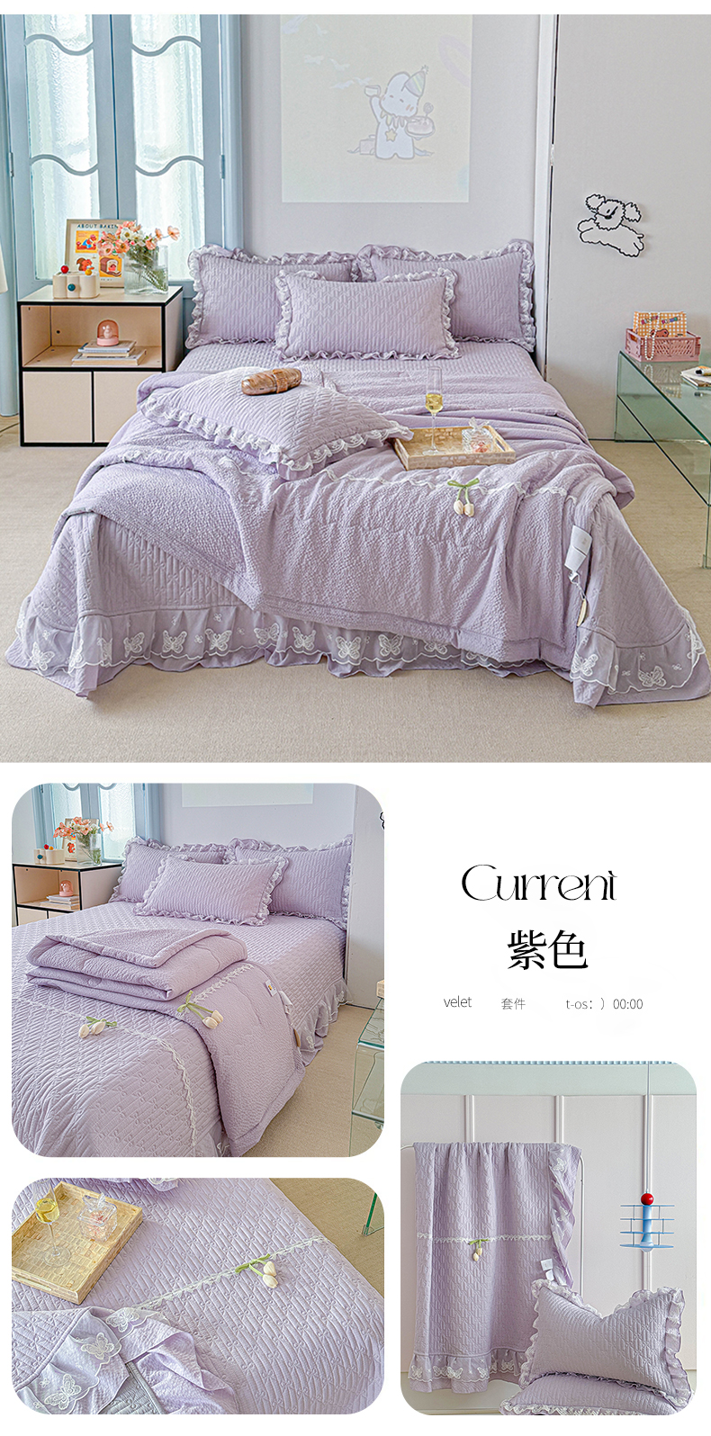 商品名称:(总)源舜家纺 2025新款郁金蝶香皱皱纱床盖夏被四件套