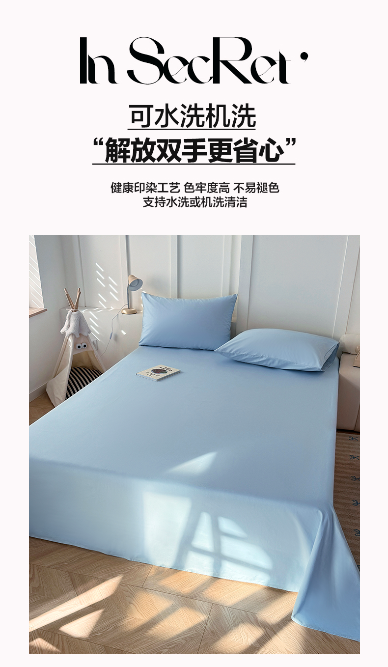 商品名称:卢赛尔 2025新款全13372纯色床单系列 天空蓝
