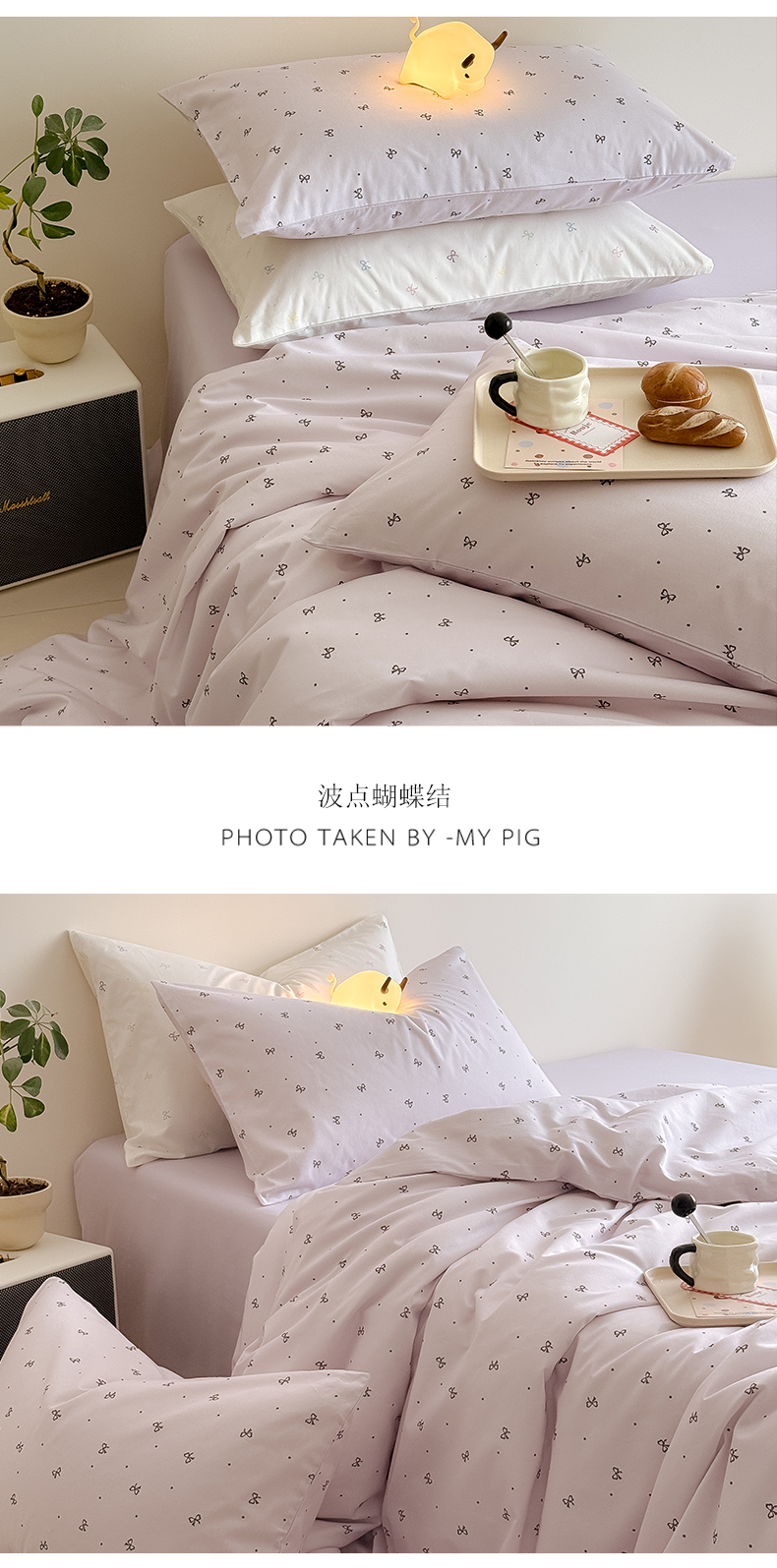 (总)Mr.pig猪先生水洗棉 2026新款全棉水洗棉毛巾绣四件套-花絮(展示价格为控价,实际价格请联系客服),花絮-微微紫,花絮-杏仁白