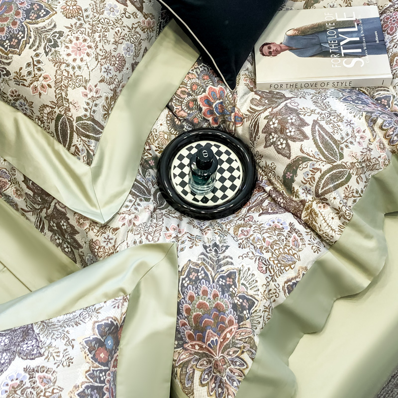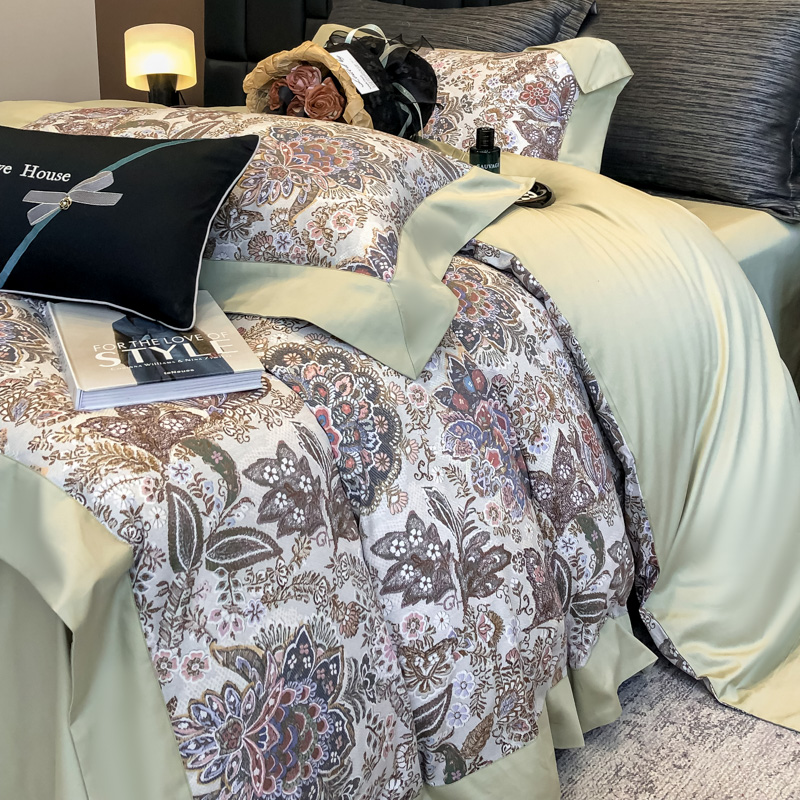 (总)若未家居 2023 新款高支高密长绒棉进口镂空款四件套 -爱法,橄榄绿,贵族红,皓月白,湖水蓝,羊脂玉