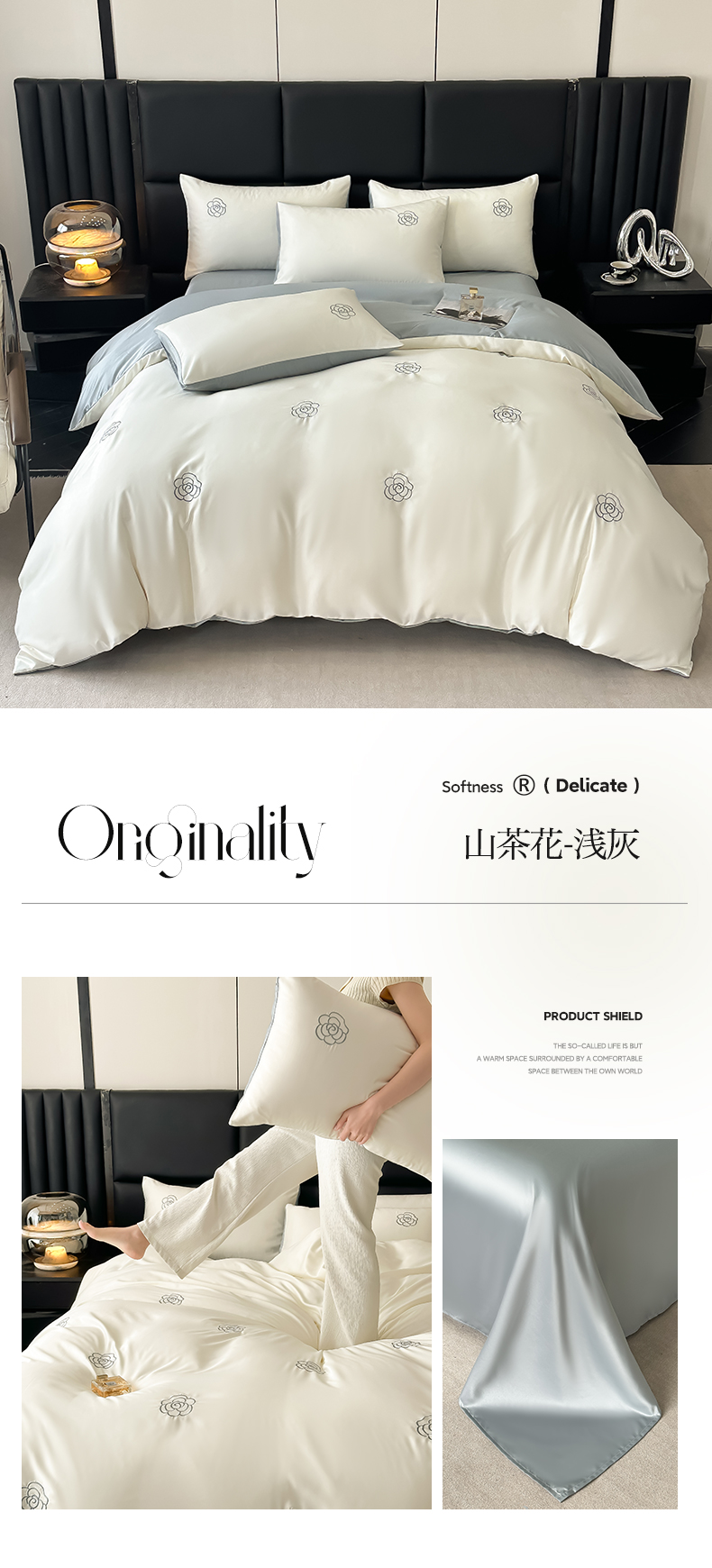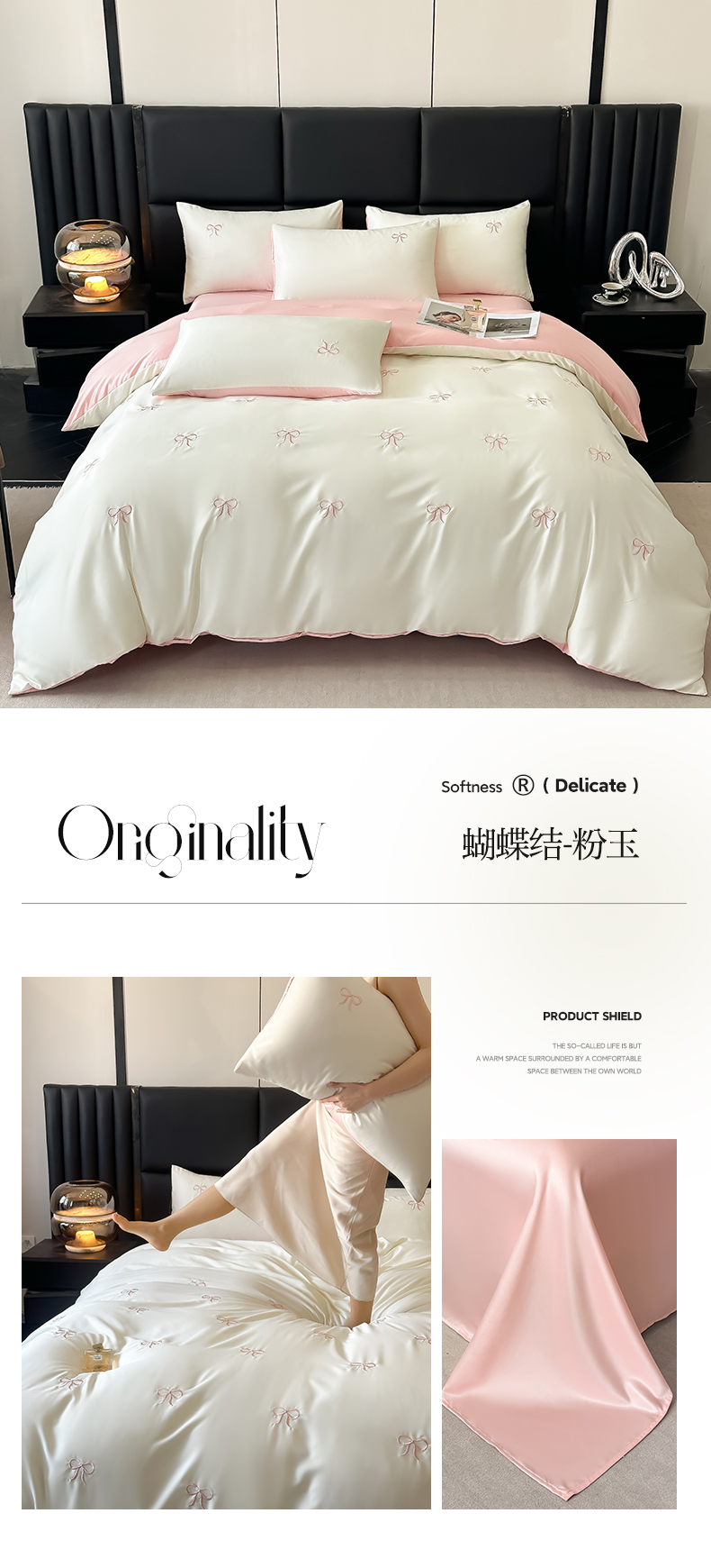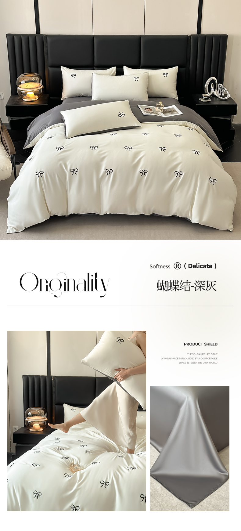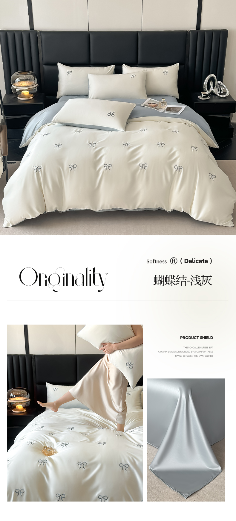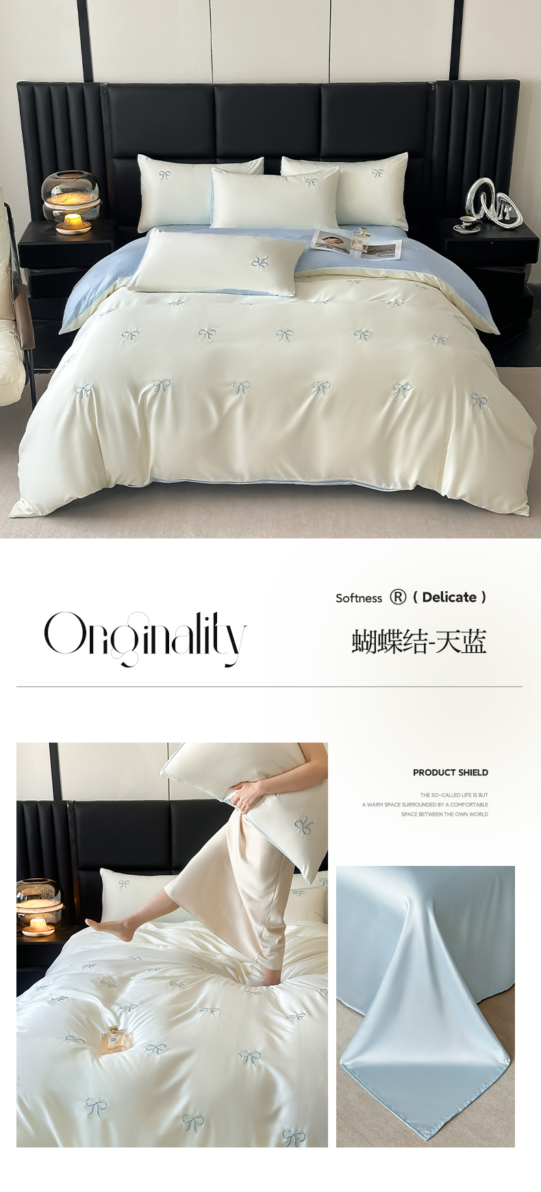 (总)宇航家纺 2025新款绣花水洗真丝天丝四件套,蝴蝶结-白拼香槟,蝴蝶结—白拼浅灰,蝴蝶结—白拼深灰,蝴蝶结—白拼天蓝,蝴蝶结—白拼粉,山茶—粉玉,山茶—浅灰,山茶—浅香槟,山茶—深灰,山茶—天蓝