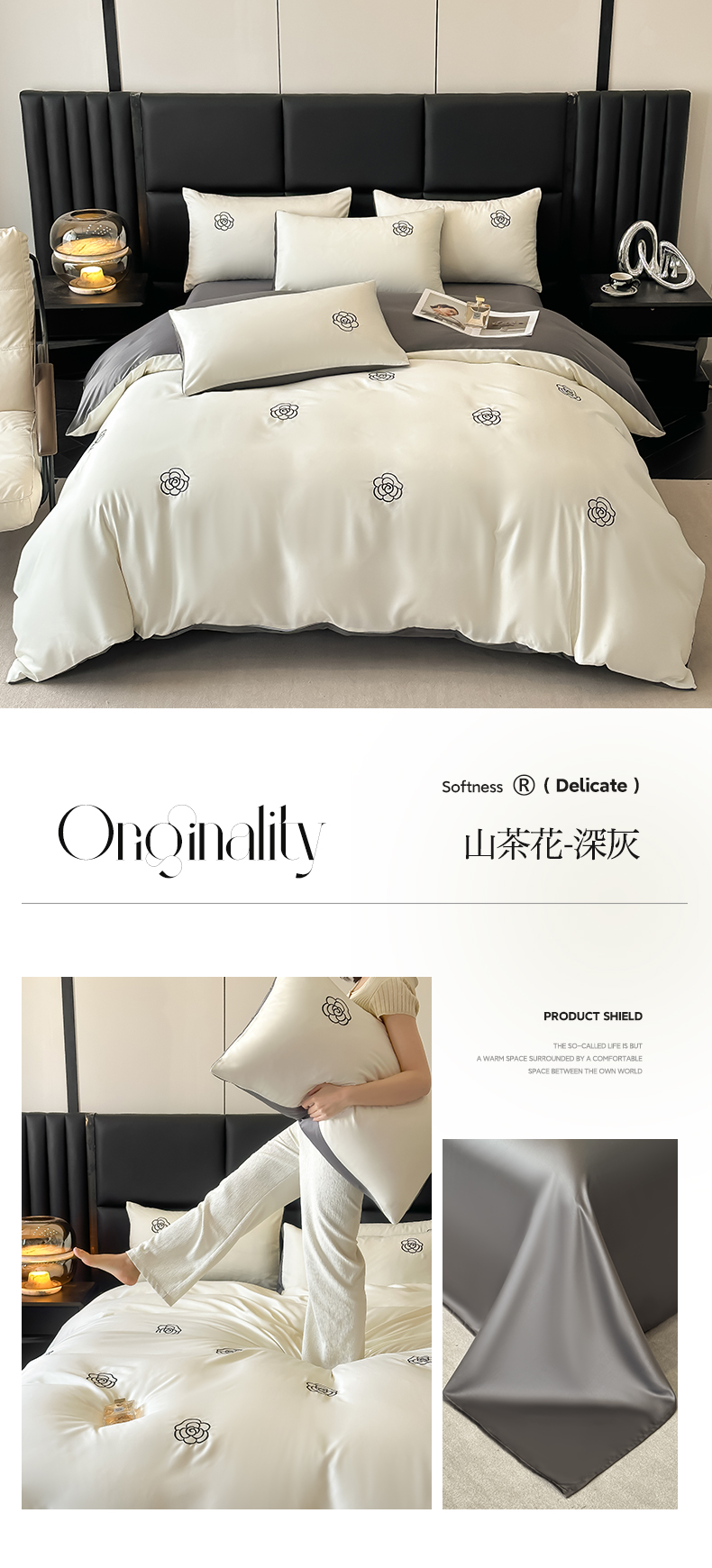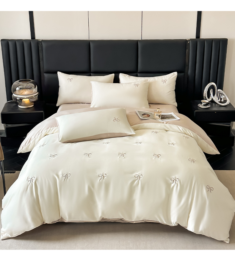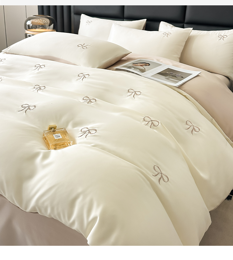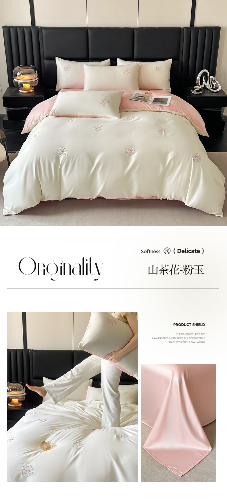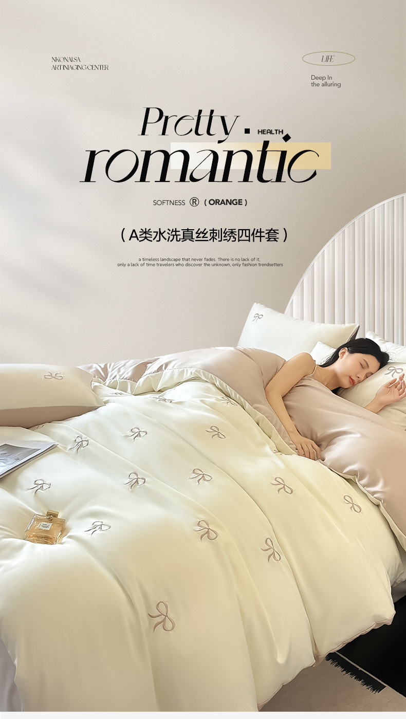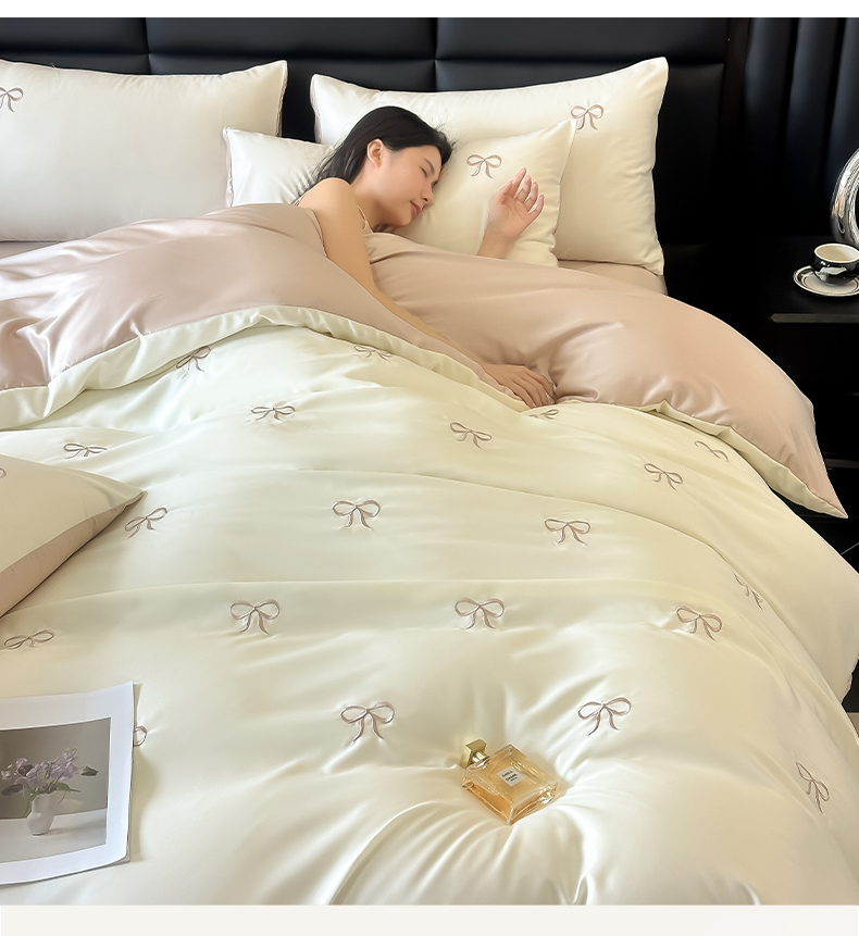 (总)宇航家纺 2025新款绣花水洗真丝天丝四件套,蝴蝶结-白拼香槟,蝴蝶结—白拼浅灰,蝴蝶结—白拼深灰,蝴蝶结—白拼天蓝,蝴蝶结—白拼粉,山茶—粉玉,山茶—浅灰,山茶—浅香槟,山茶—深灰,山茶—天蓝