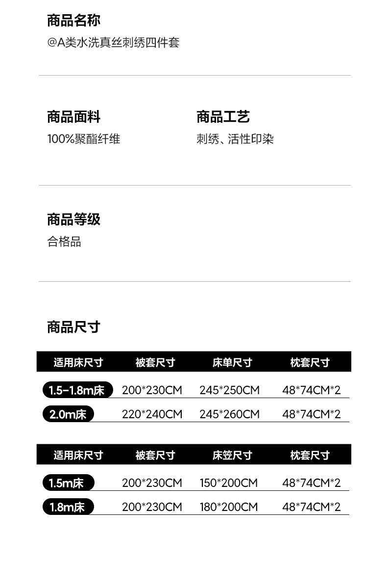 商品名称:(总)宇航家纺 2025新款绣花水洗真丝天丝四件套