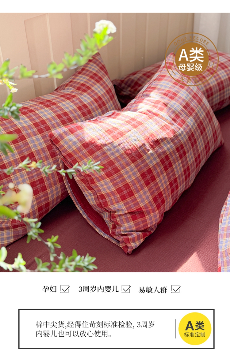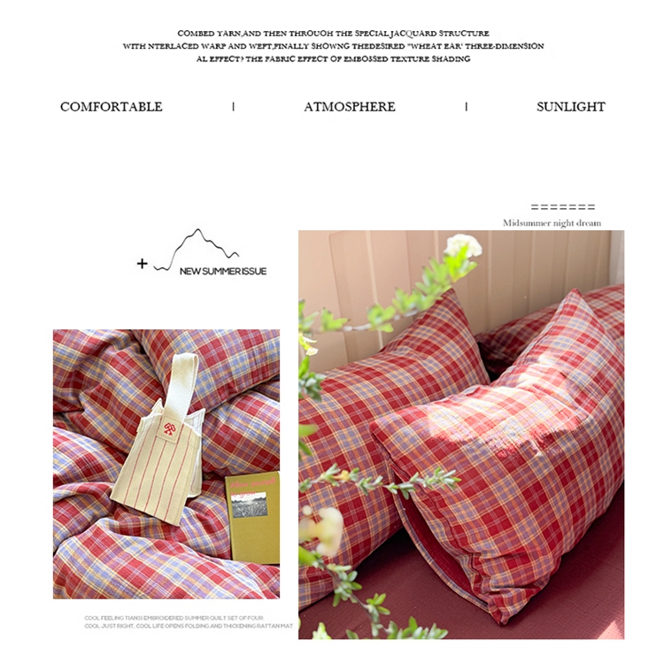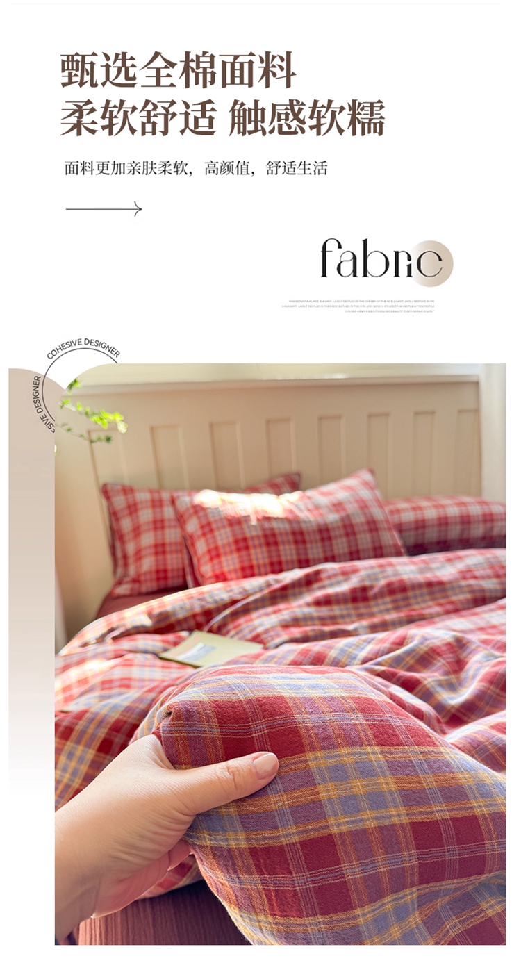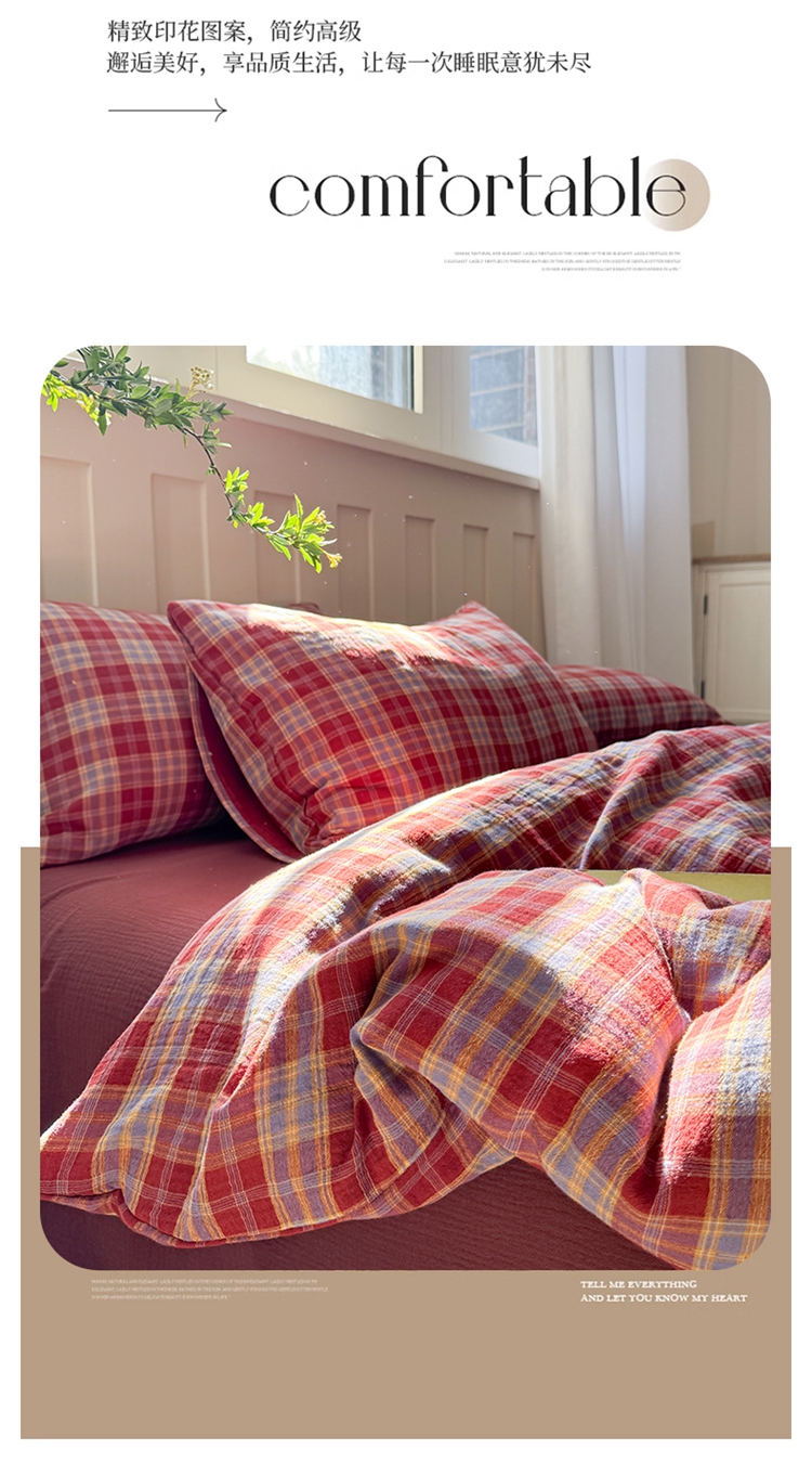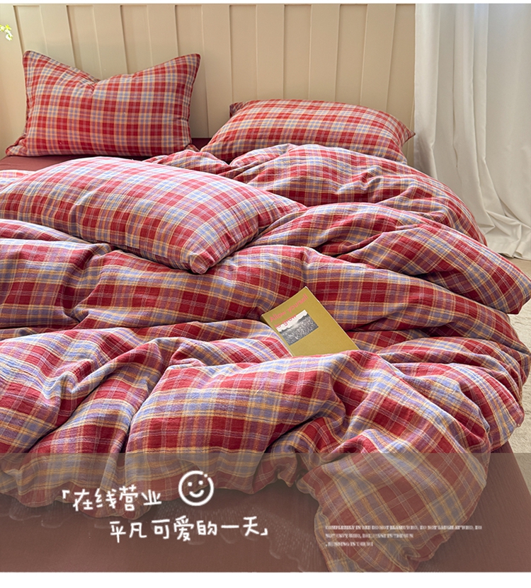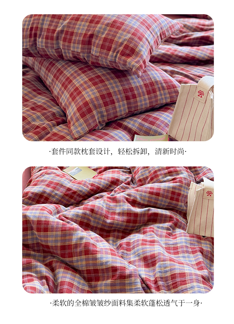 商品名称:(总)萝莉家纺 2025新款复古全棉A类色织双层纱皱皱纱格子四件套