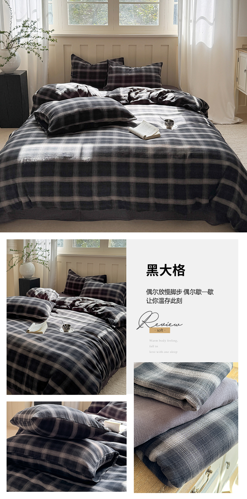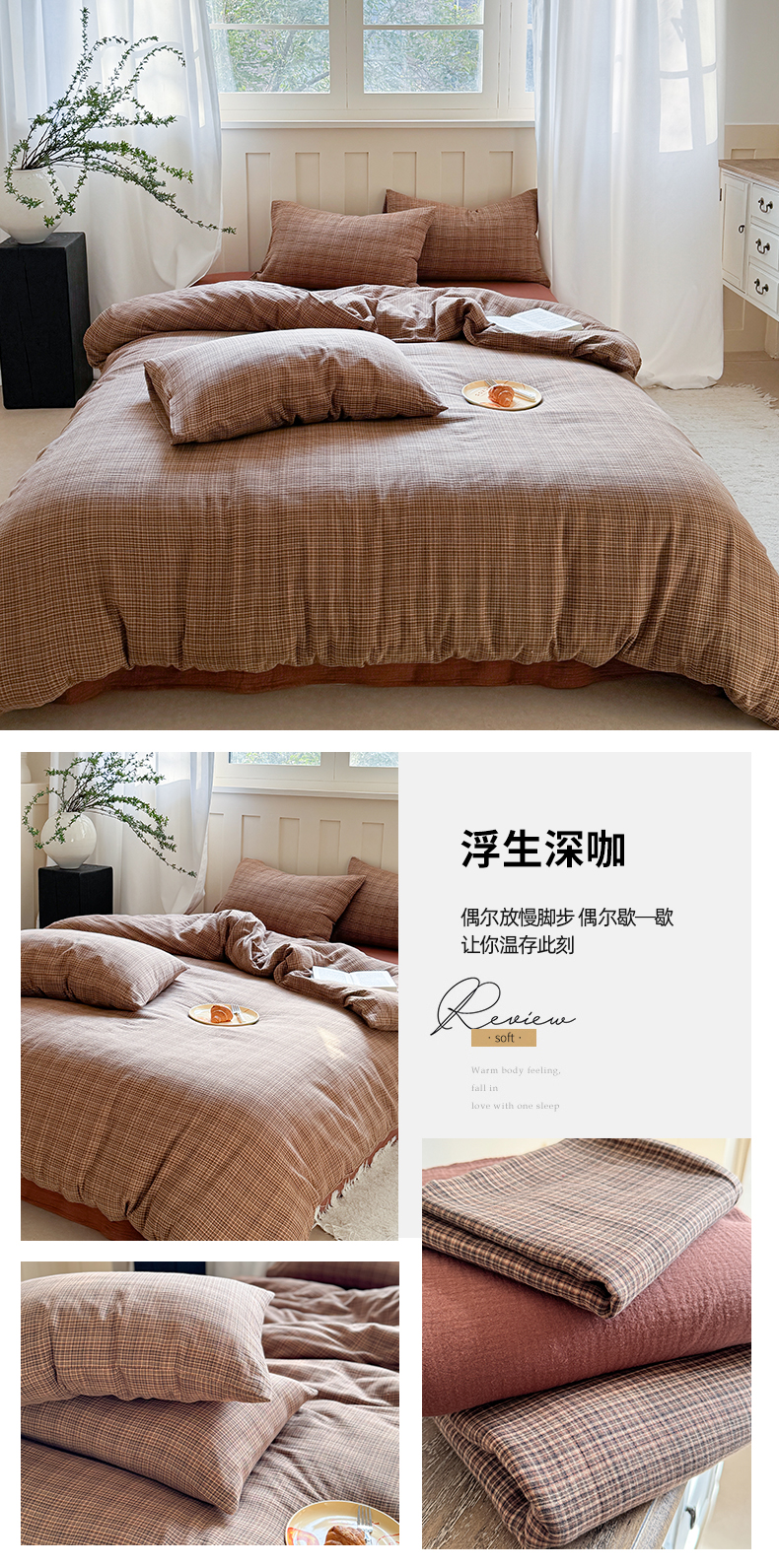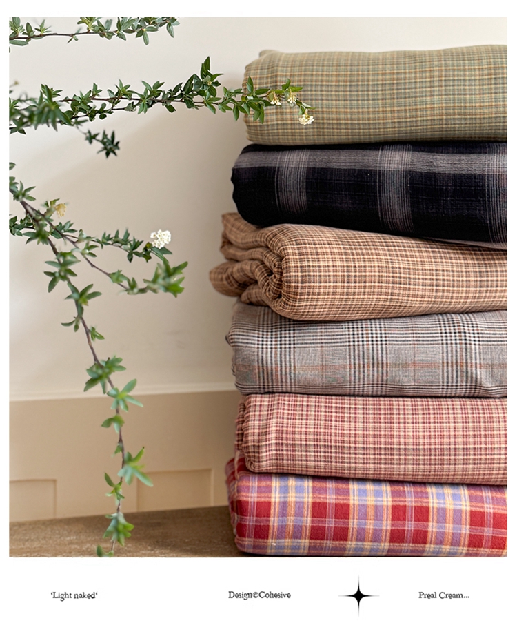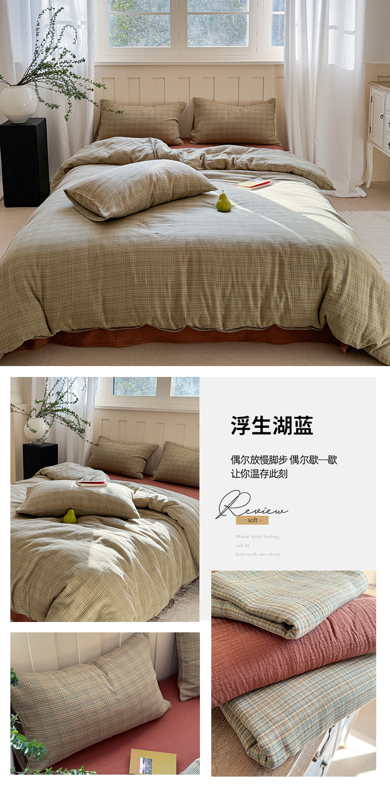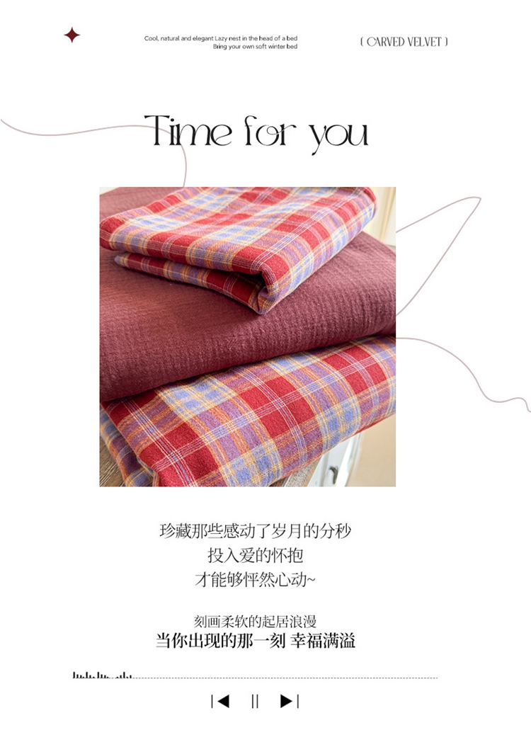 商品名称:(总)萝莉家纺 2025新款复古全棉A类色织双层纱皱皱纱格子四件套