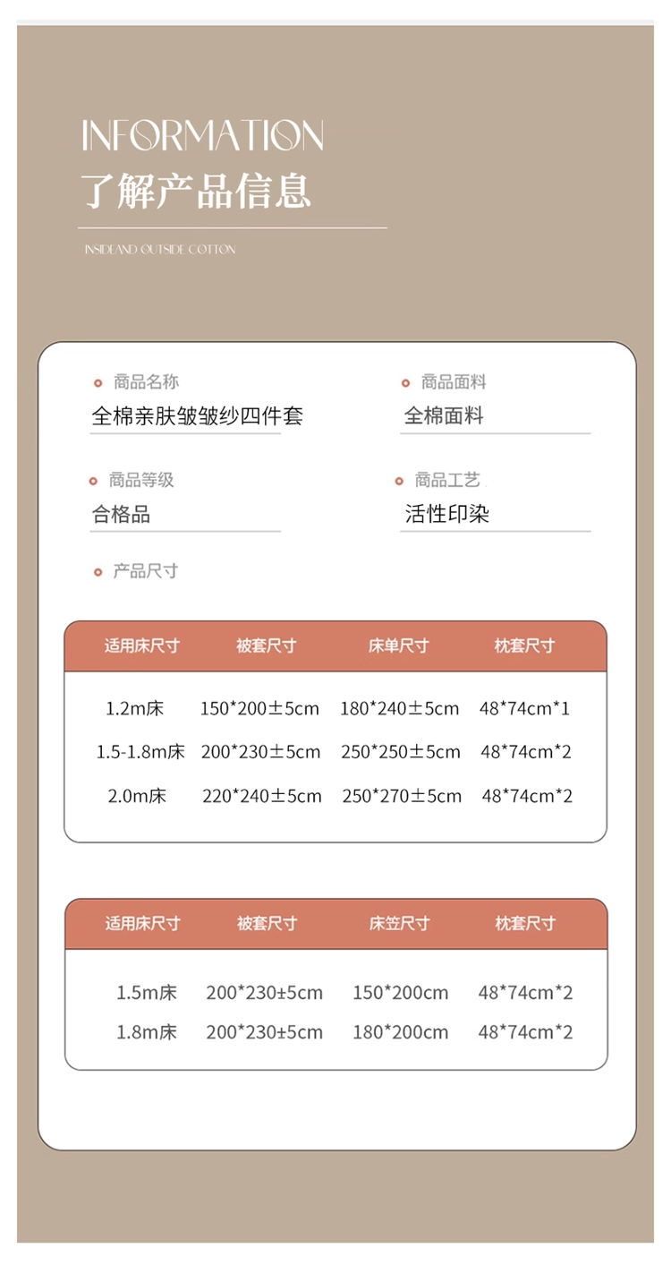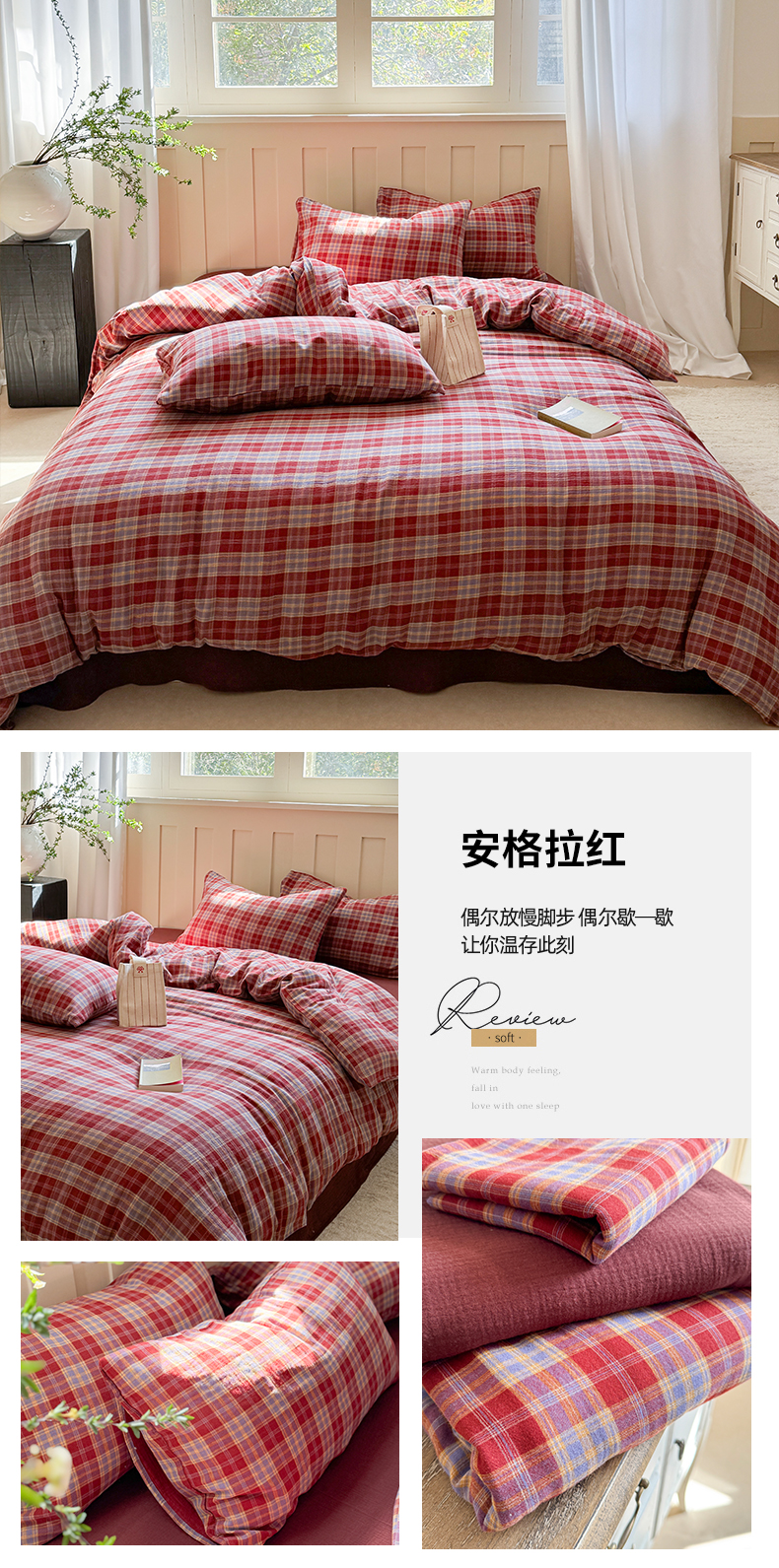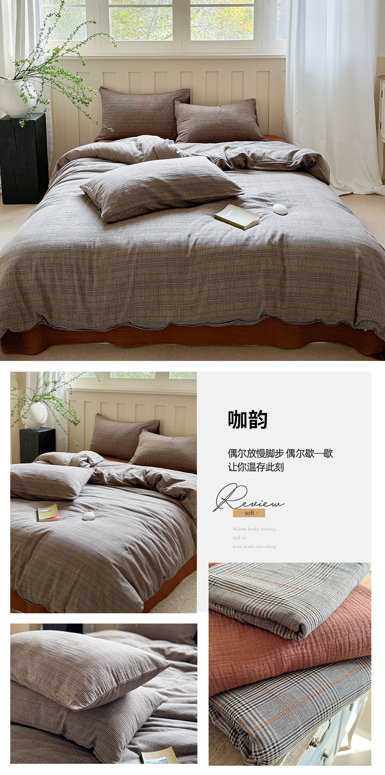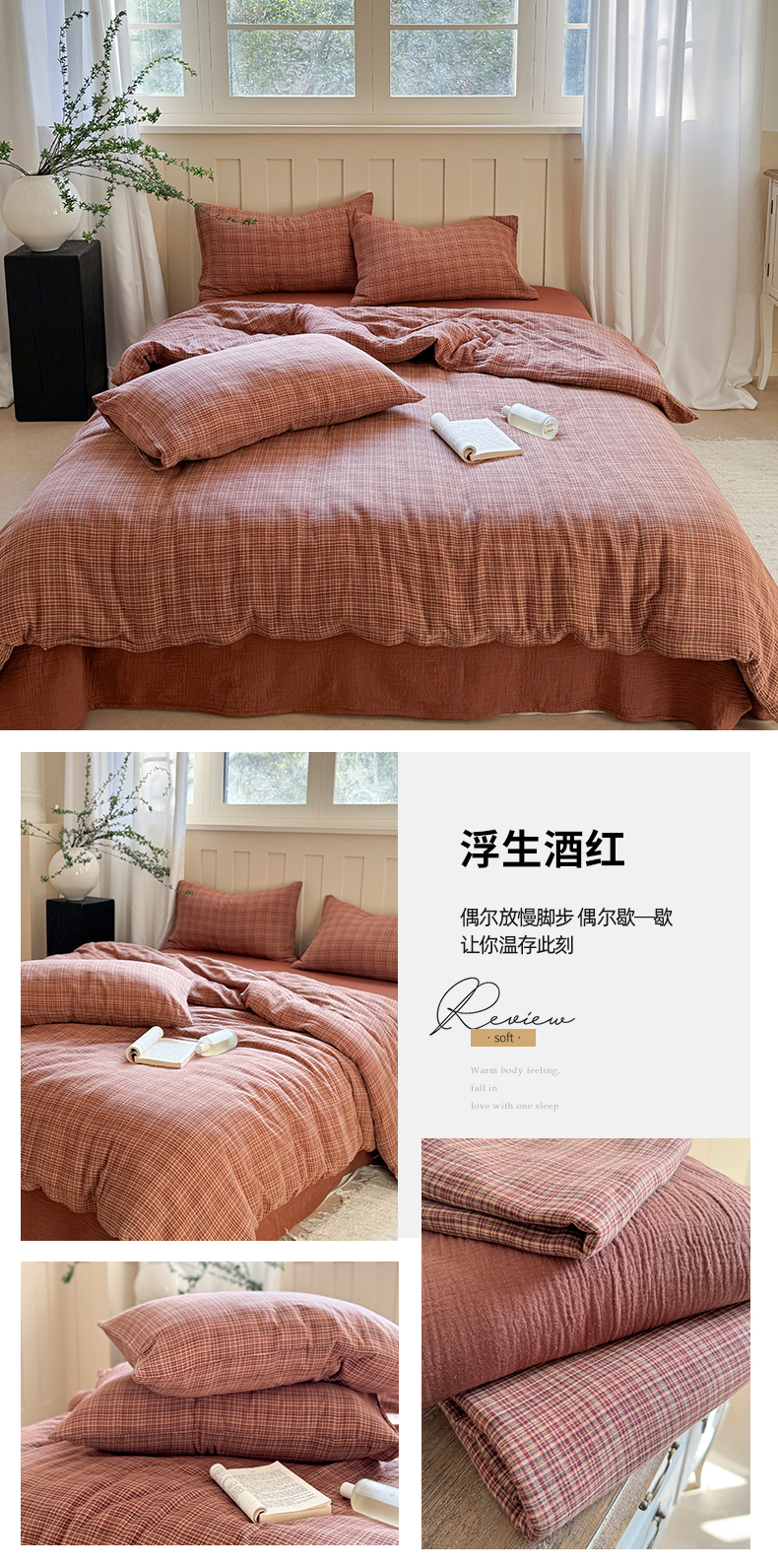 商品名称:(总)萝莉家纺 2025新款复古全棉A类色织双层纱皱皱纱格子四件套