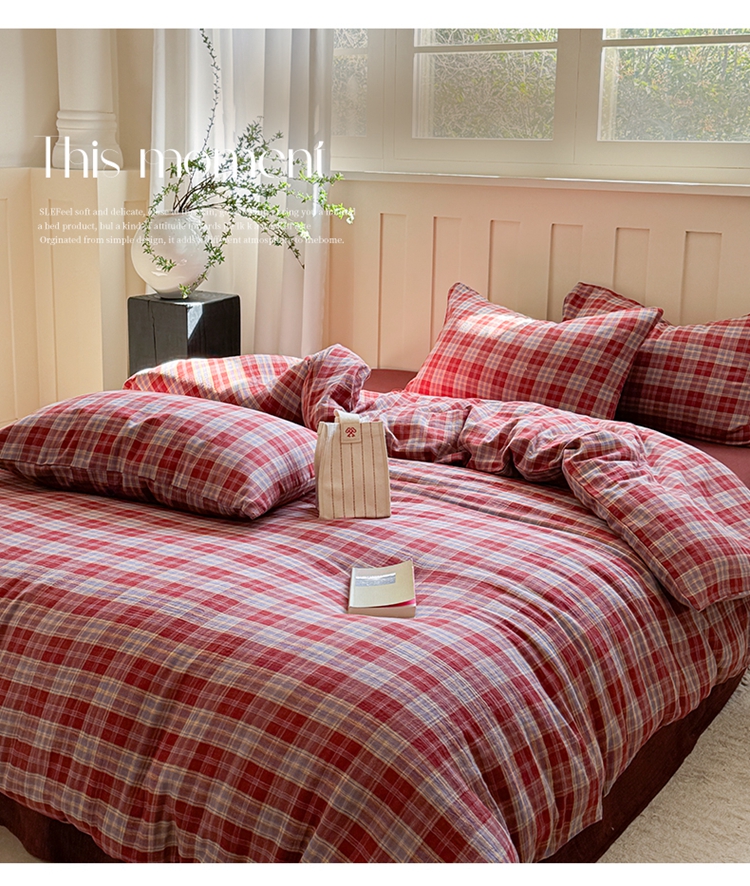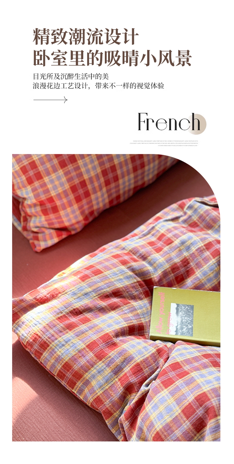 (总)萝莉家纺 2025新款复古全棉A类色织双层纱皱皱纱格子四件套