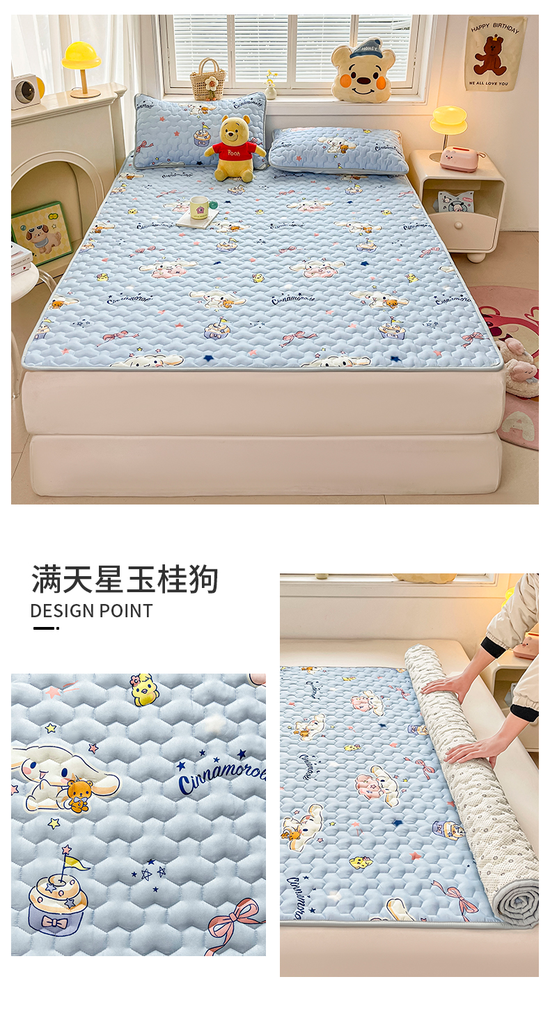 商品名称:迪梦思家纺 2025新款A类正版授权卡通印花水洗棉夹棉学生床护垫 满天星玉桂狗