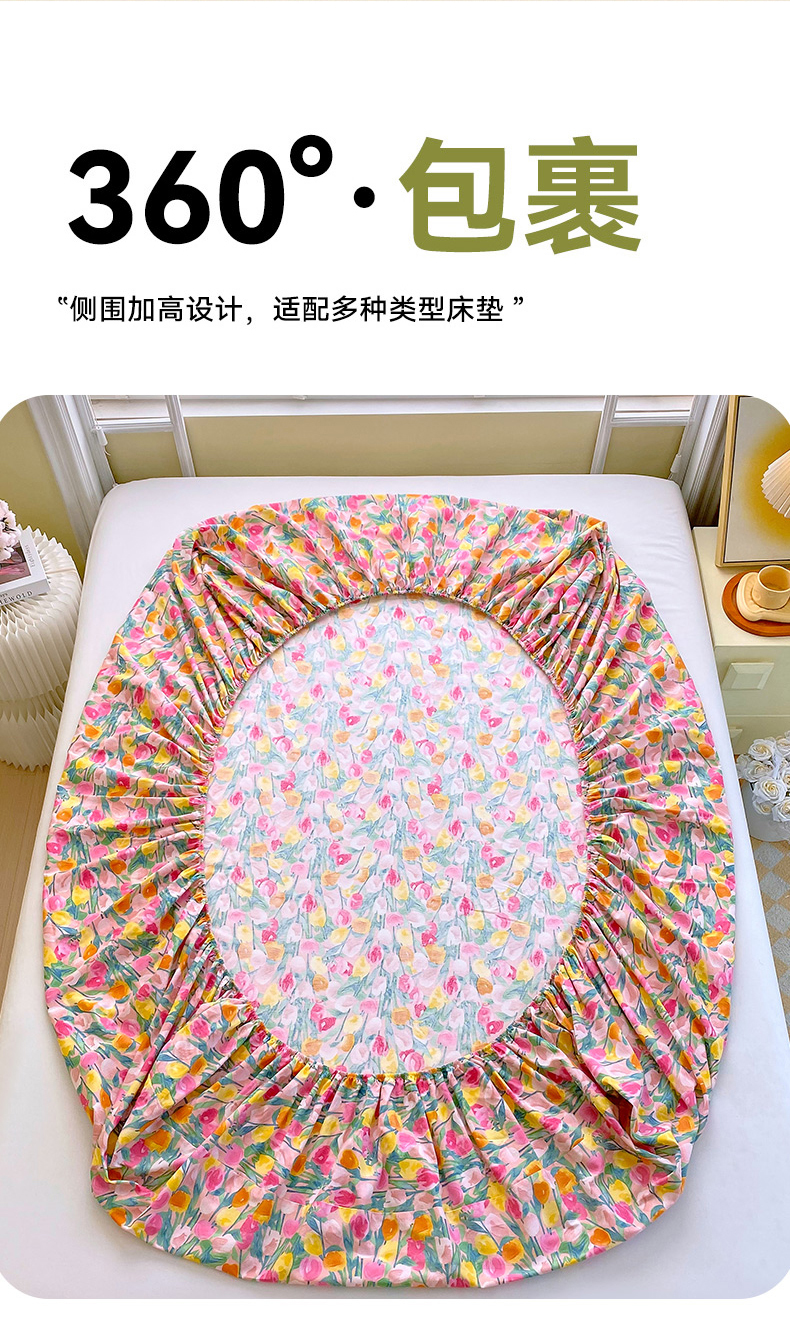 • 91家纺网 家纺一手货源 找家纺 宝齐莱家纺 2025新款13372全棉印花单品系列-单床笠 郁金香