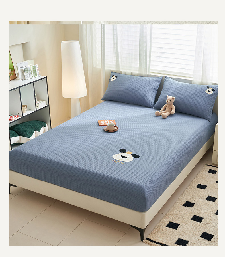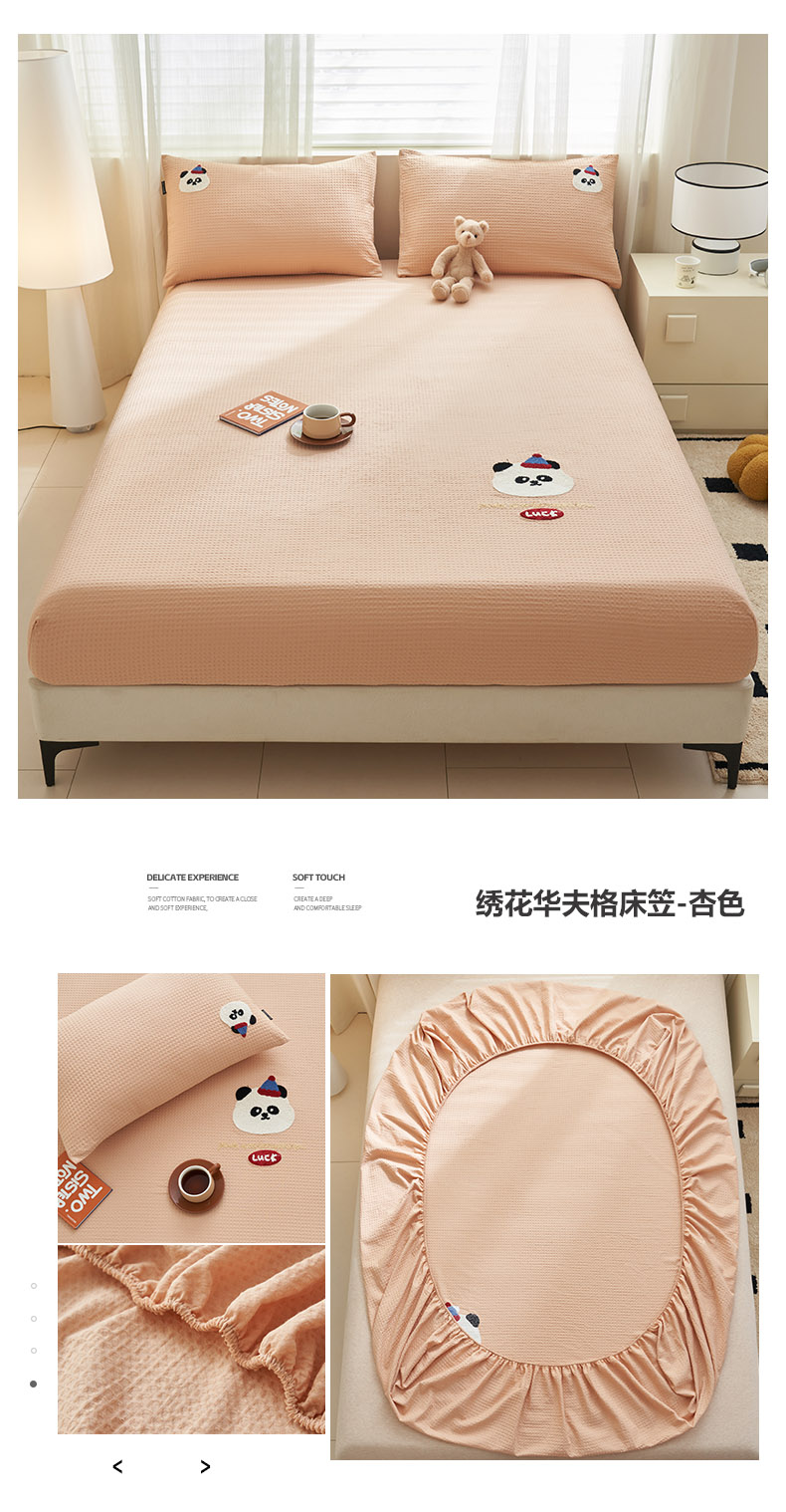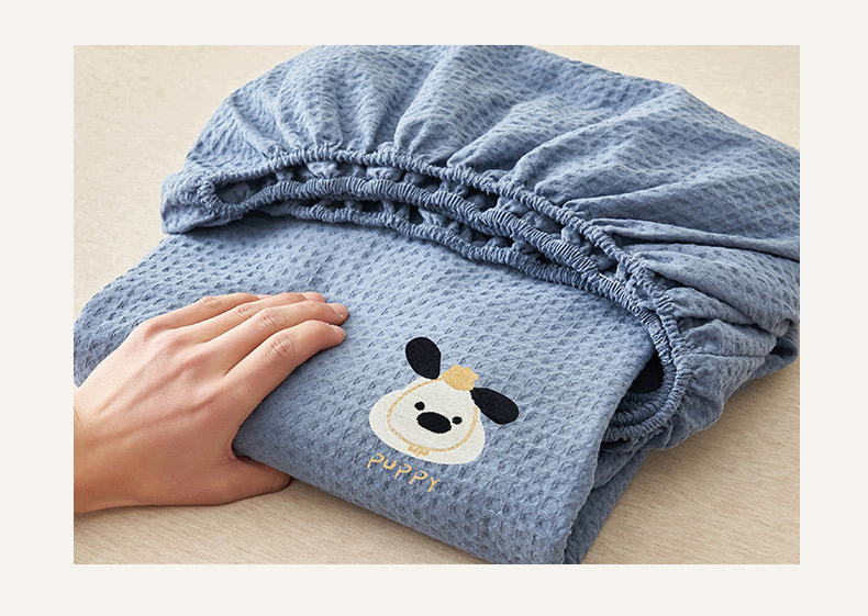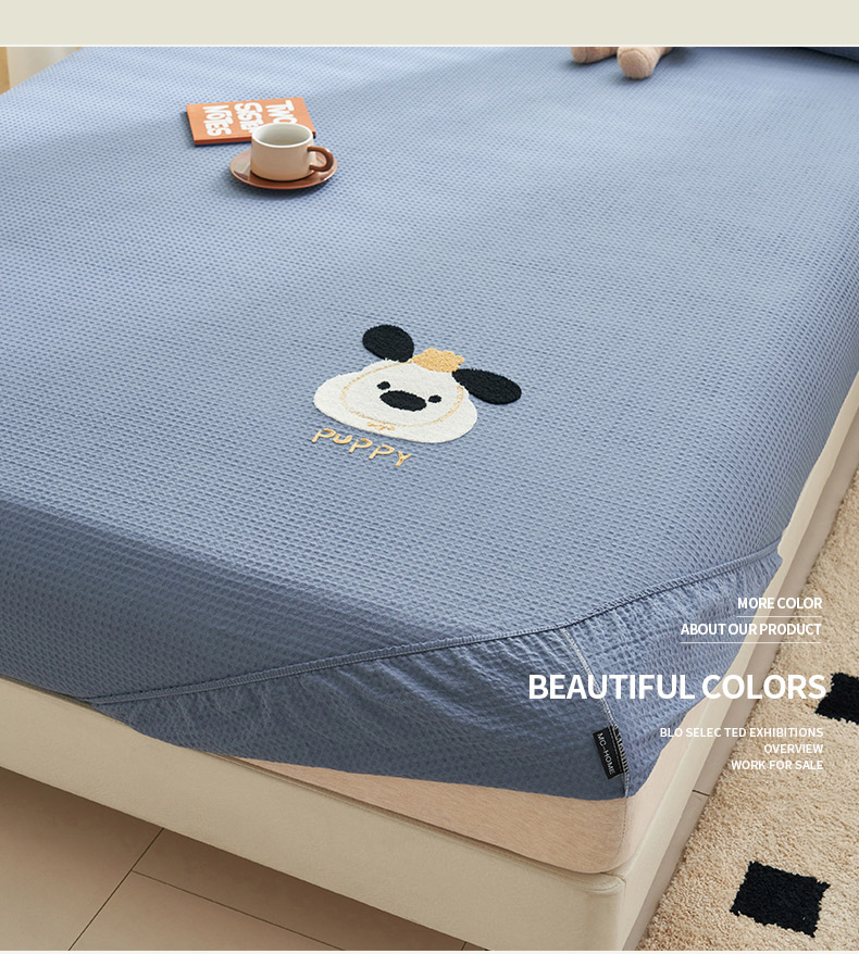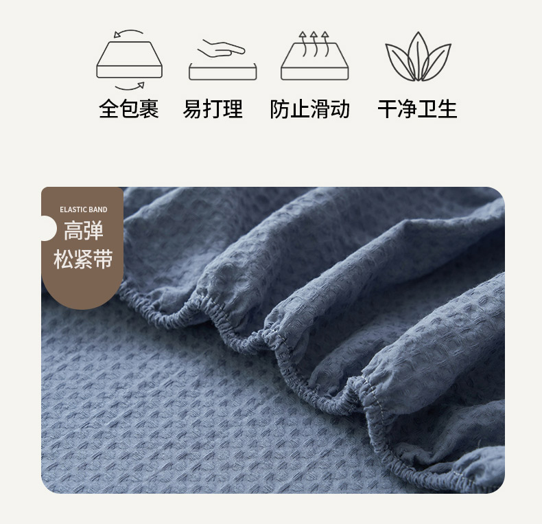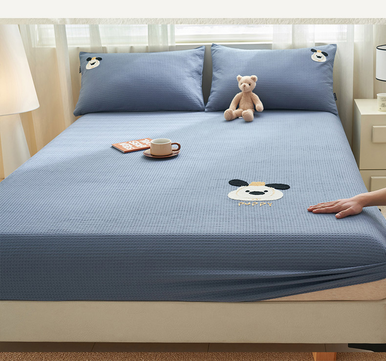 寐绸家纺 2025新款纯棉华夫格毛巾绣单床笠 绣花华夫格床笠-宾利蓝