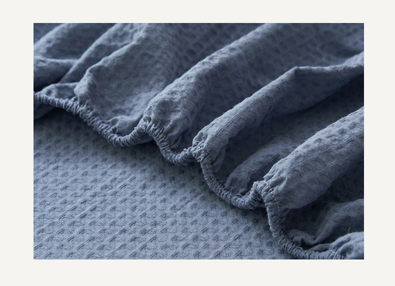 • 91家纺网 家纺一手货源 找家纺 寐绸家纺 2025新款纯棉华夫格毛巾绣单床笠 绣花华夫格床笠-宾利蓝