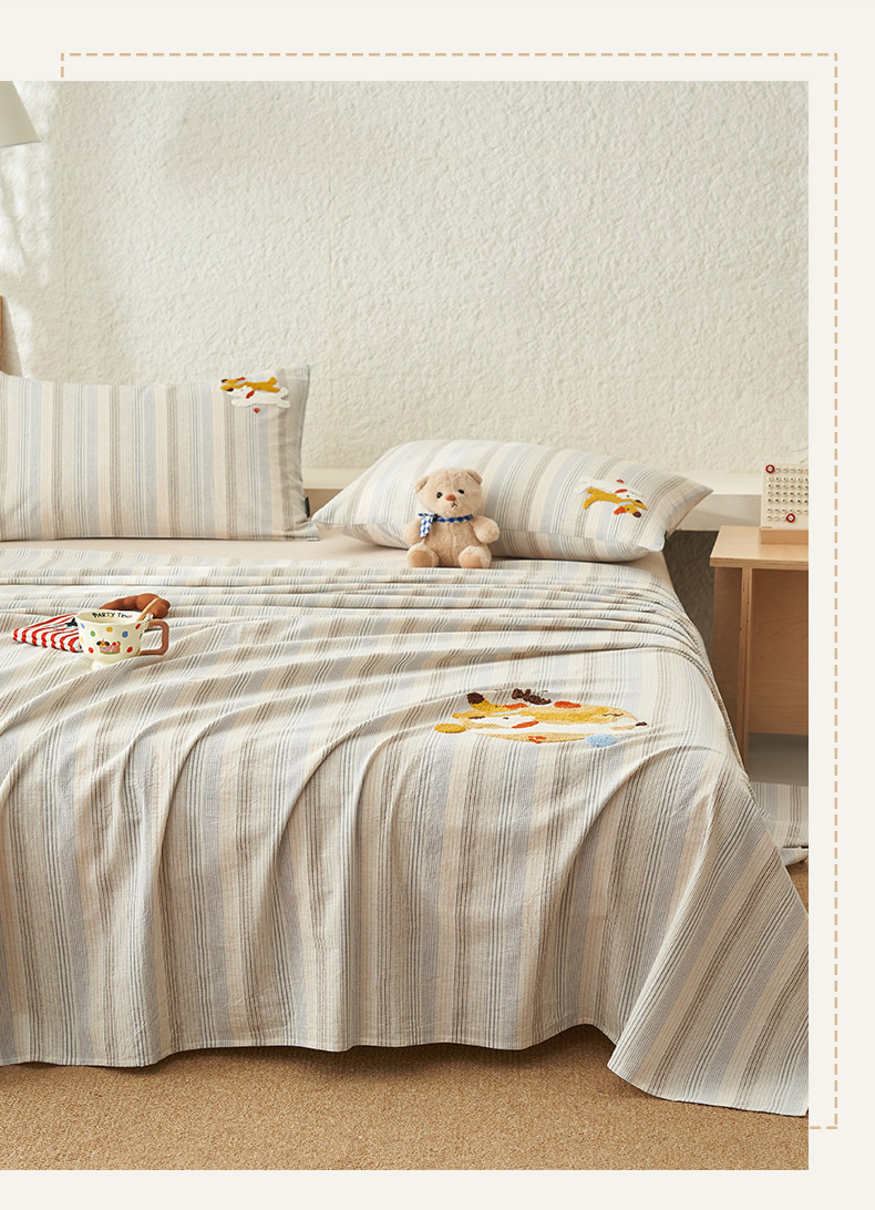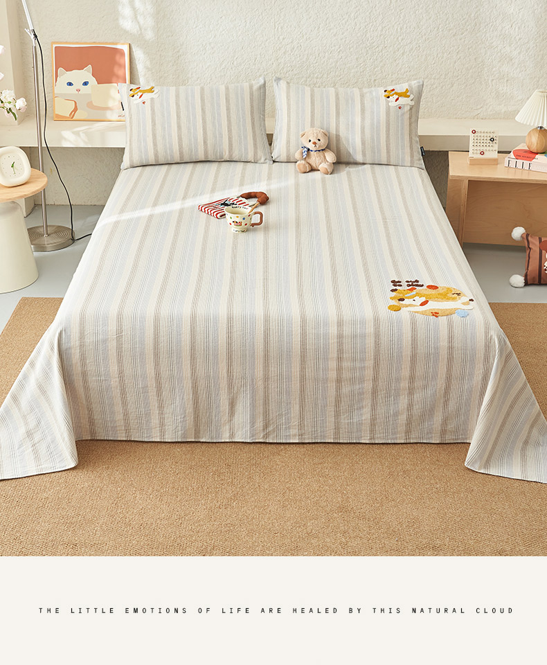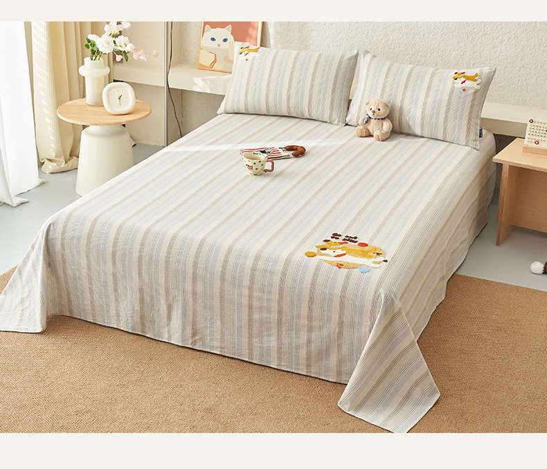 寐绸家纺 2025新款纯棉色织水洗棉竖条单床单 水洗棉竖条床单-炫彩驼