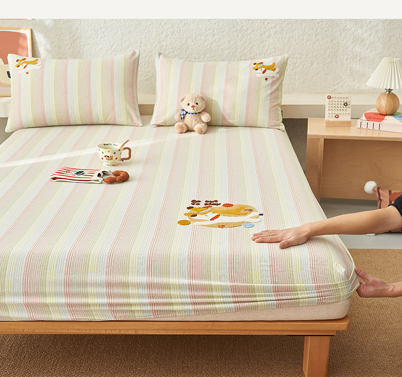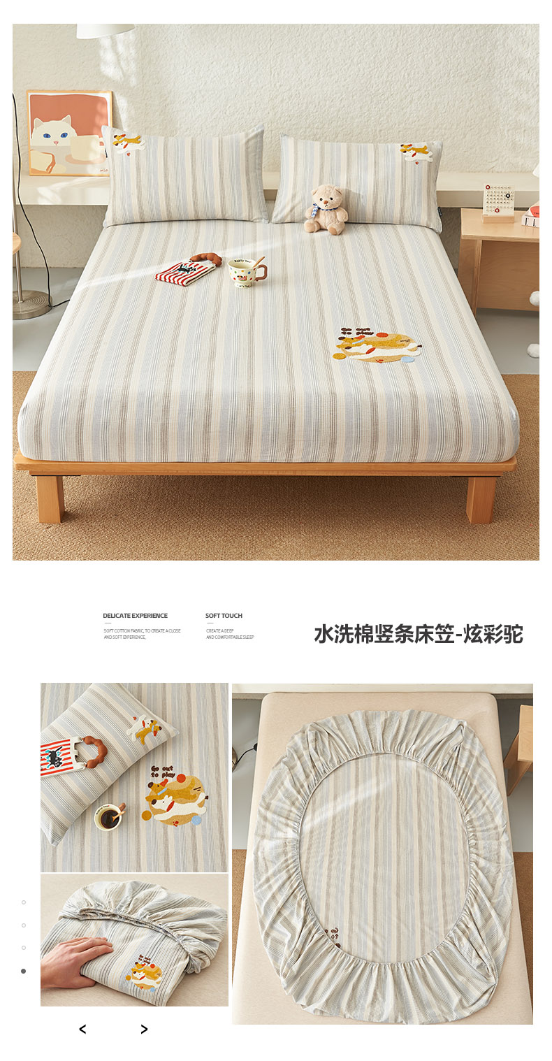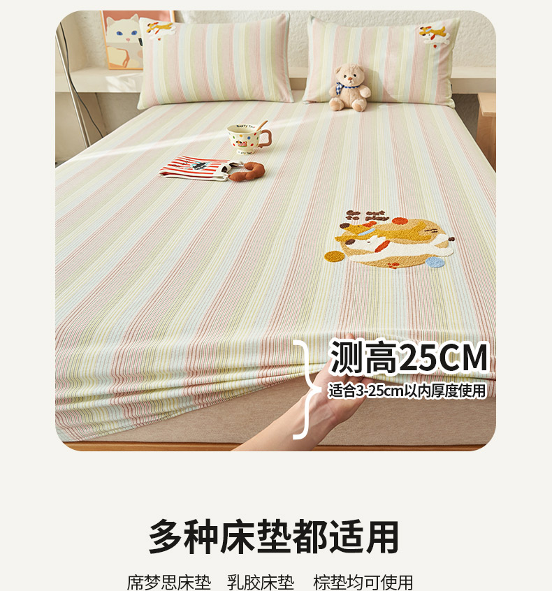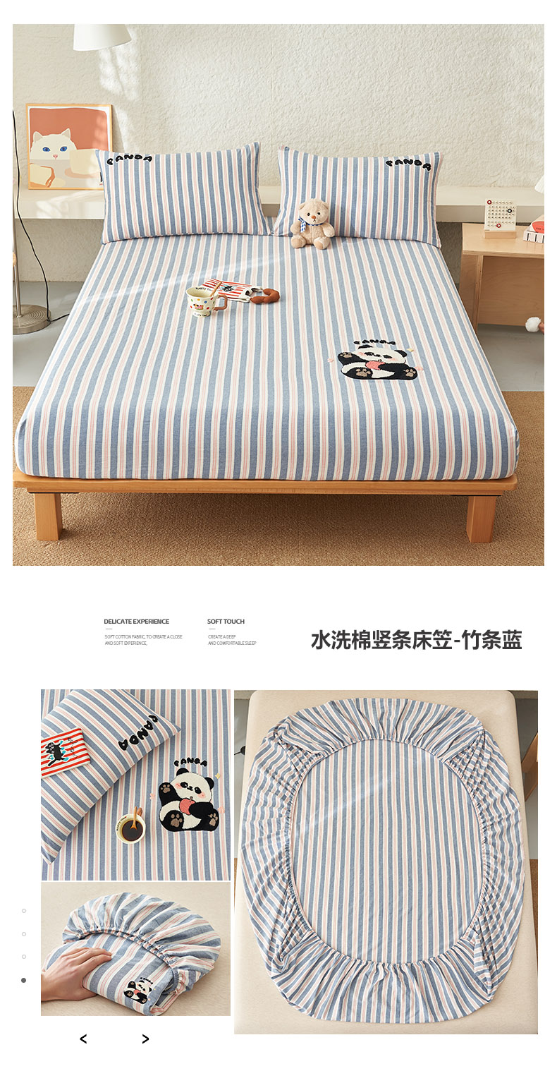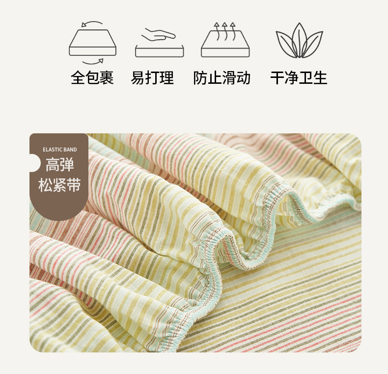 寐绸家纺 2025新款纯棉色织水洗棉竖条单床笠 水洗棉竖条床笠-炫彩绿