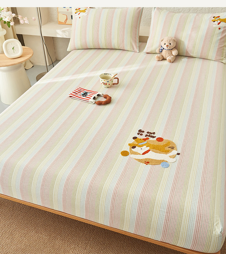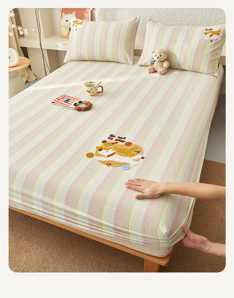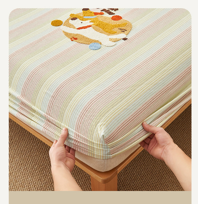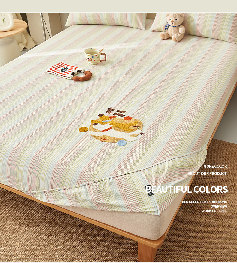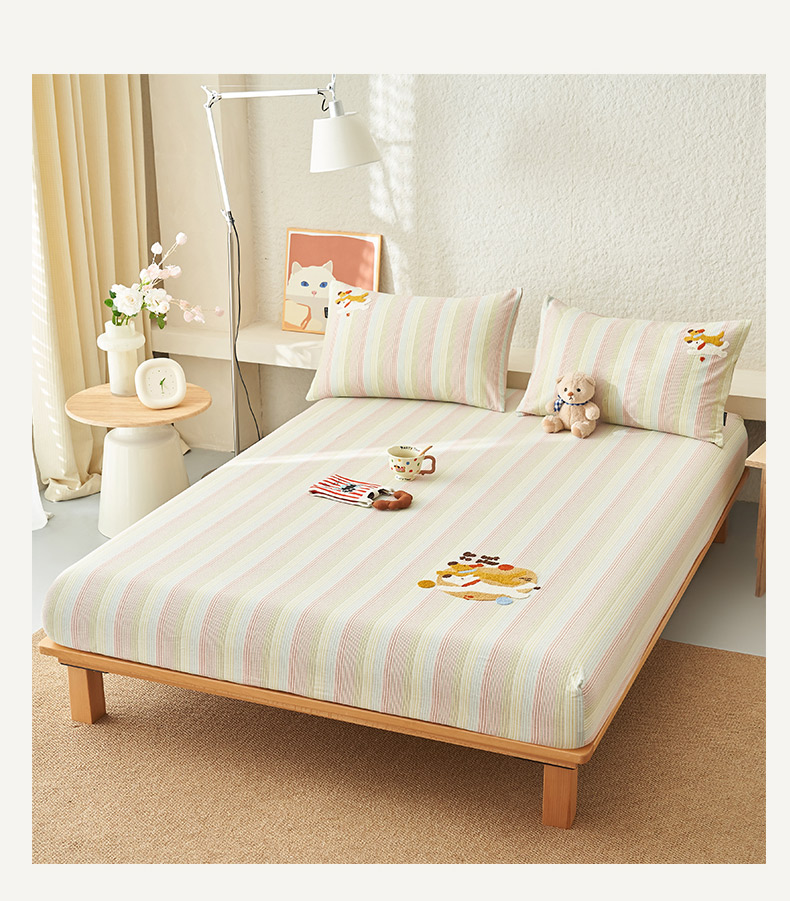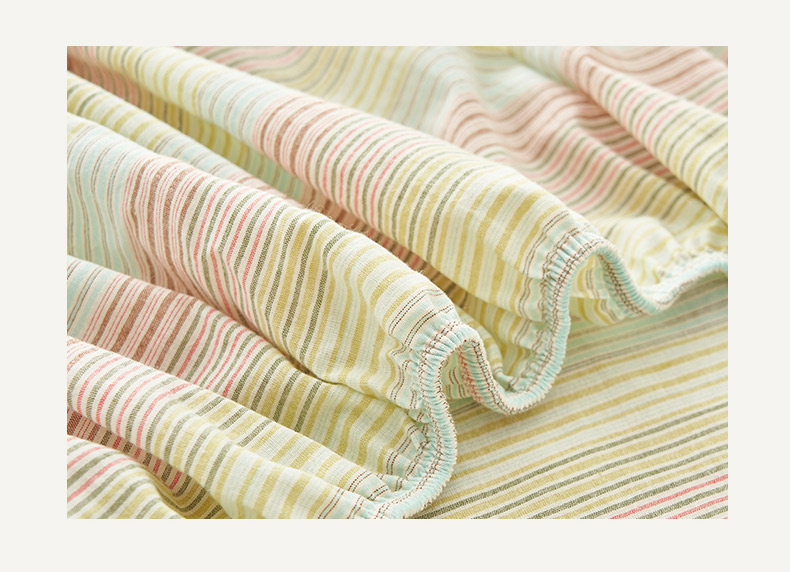 寐绸家纺 2025新款纯棉色织水洗棉竖条单床笠 水洗棉竖条床笠-炫彩绿