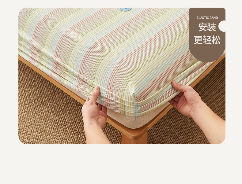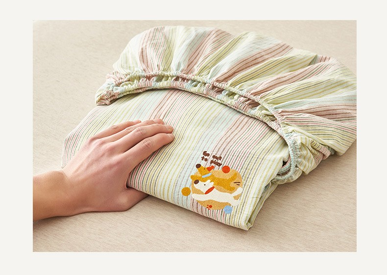 • 91家纺网 家纺一手货源 找家纺 寐绸家纺 2025新款纯棉色织水洗棉竖条单床笠 水洗棉竖条床笠-炫彩绿