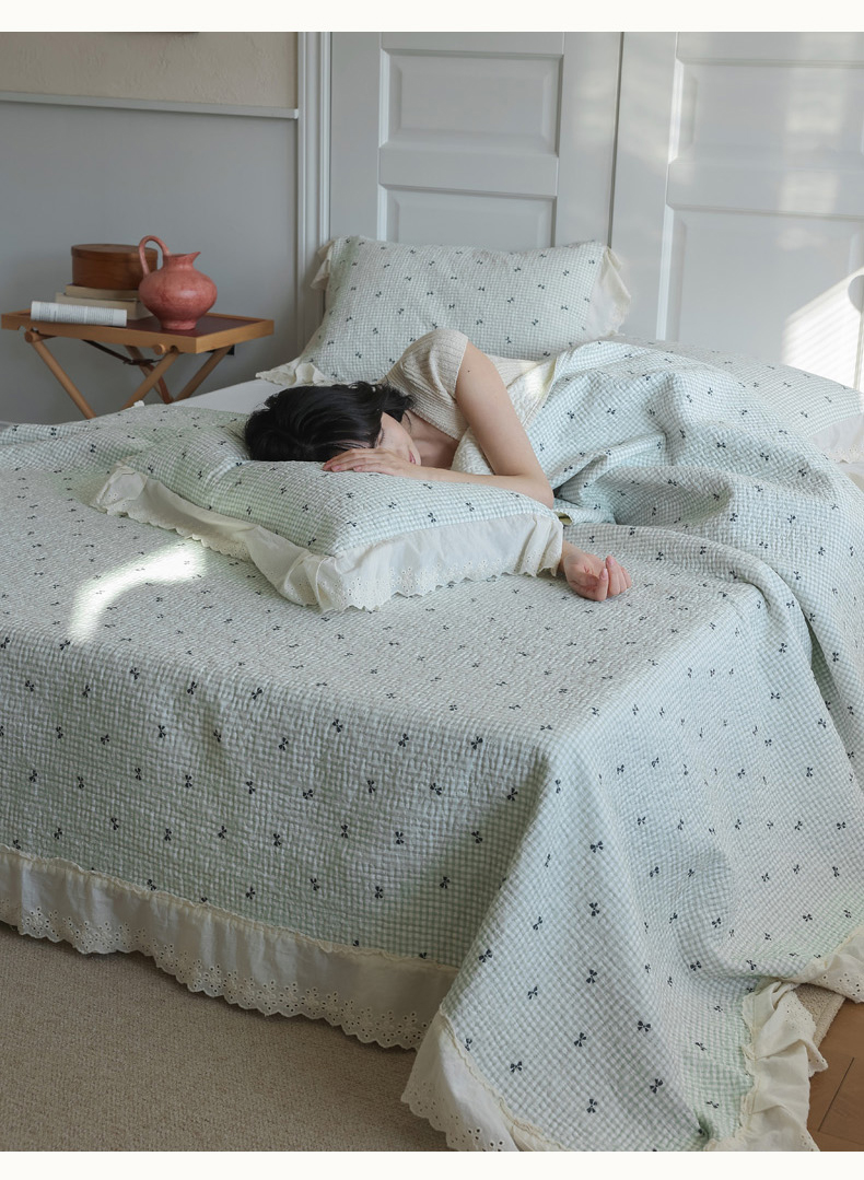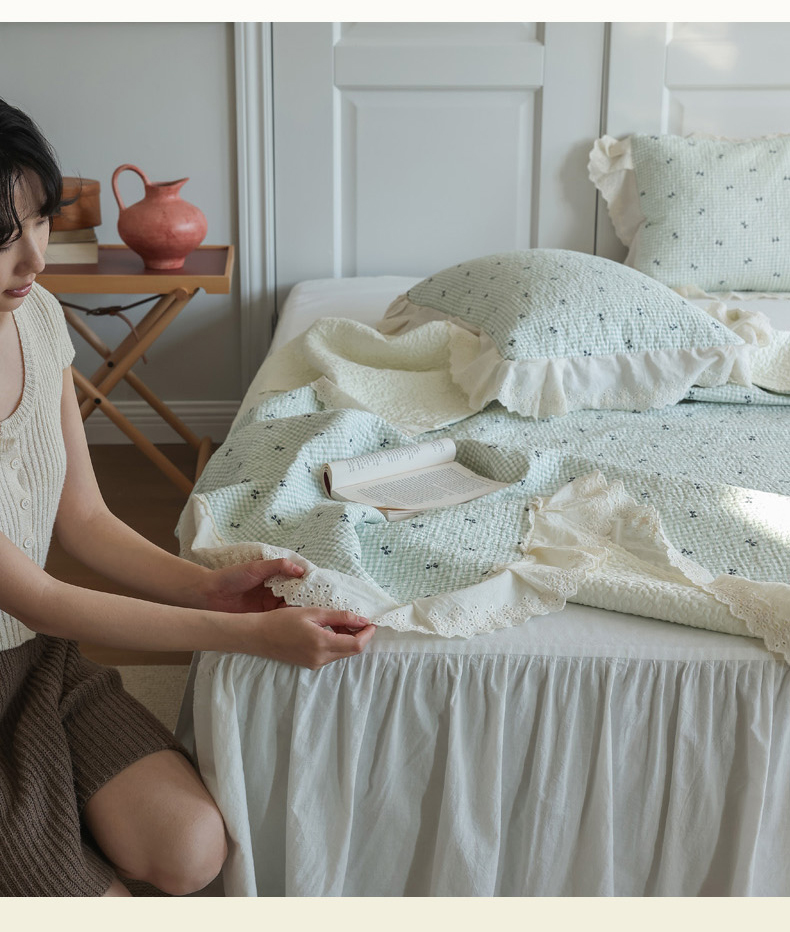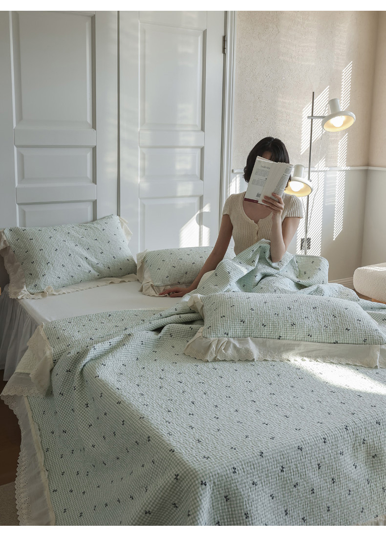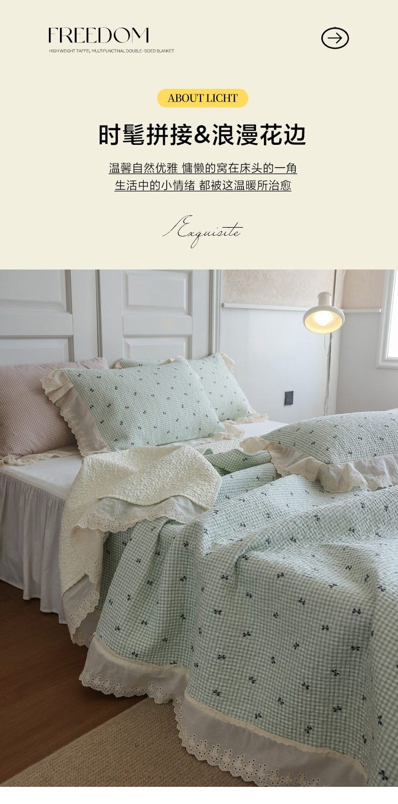 万盛家纺 2025新款全棉水洗花边床盖三件套 念思语绿