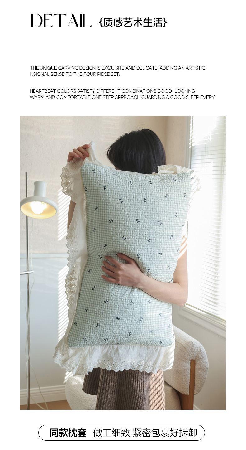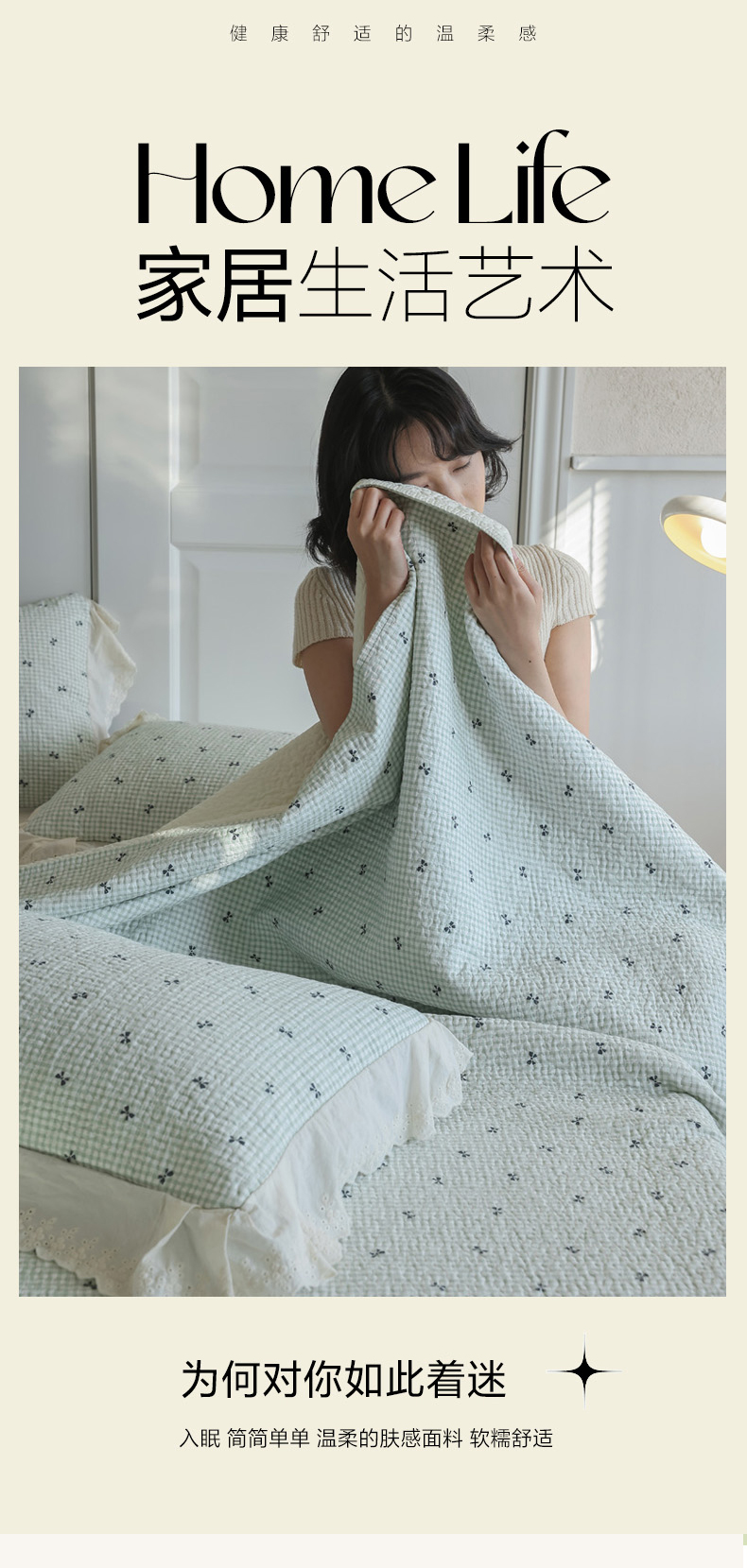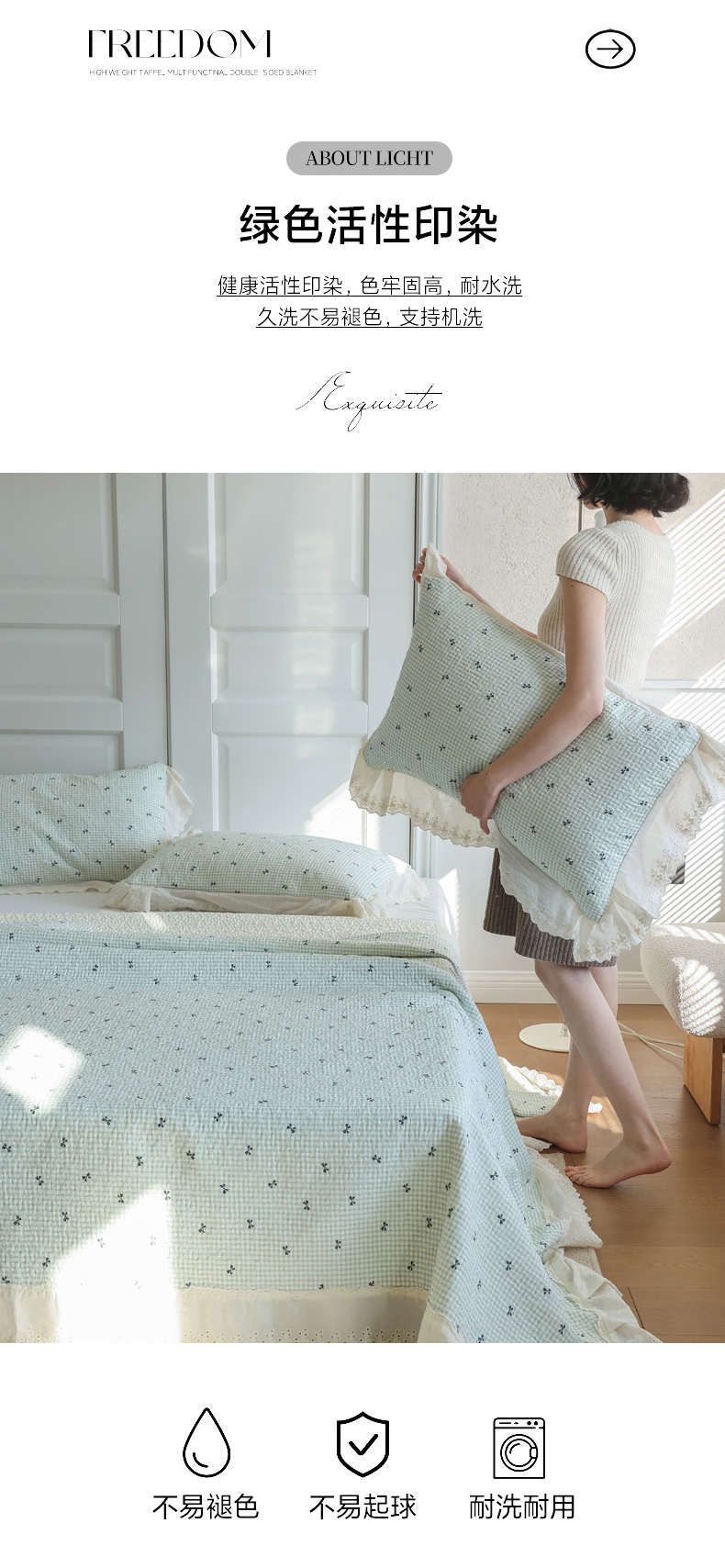 商品名称:万盛家纺 2025新款全棉水洗花边床盖三件套 念思语绿