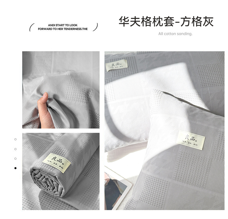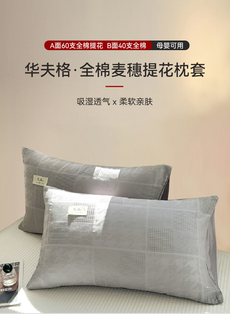 商品名称:眠博士 2025新款全棉华夫格麦穗枕套 华夫格枕套-方格灰
