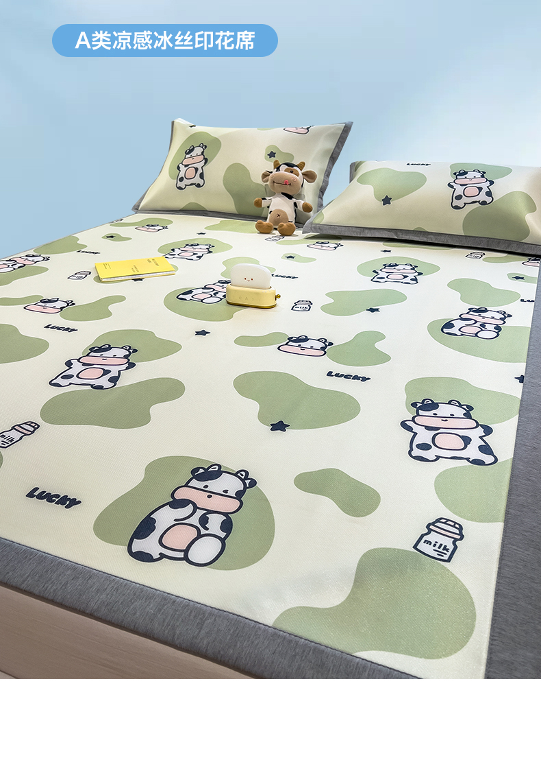 商品名称:兄弟坊 2025新款数码小清新印花冰丝席 活力小牛