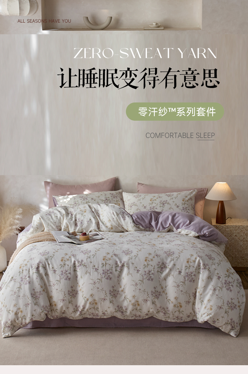 商品名称:时年家纺 2025零汗纱™数码印花系列套件 沫香
