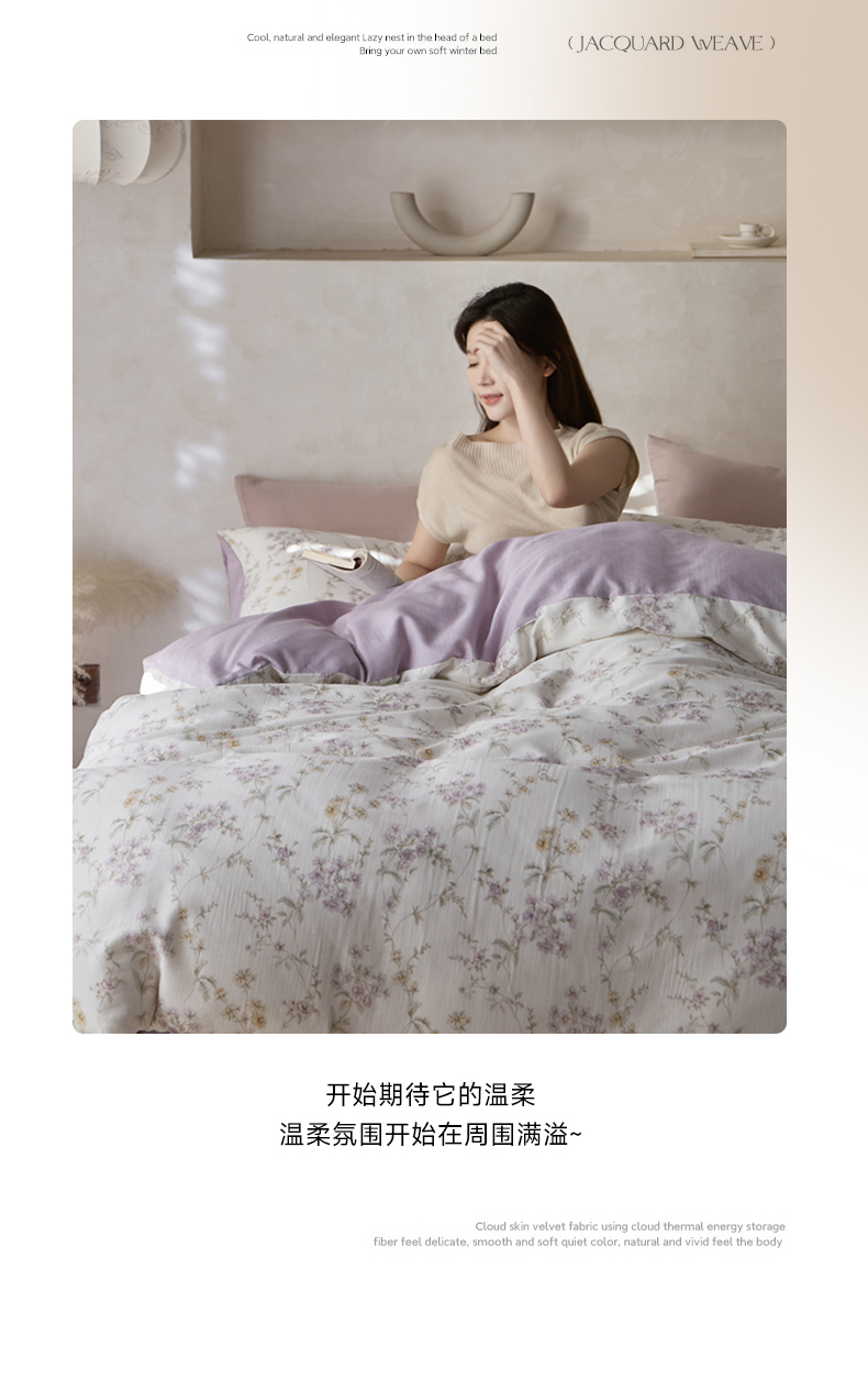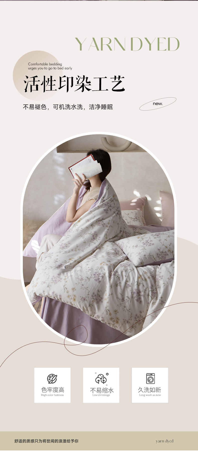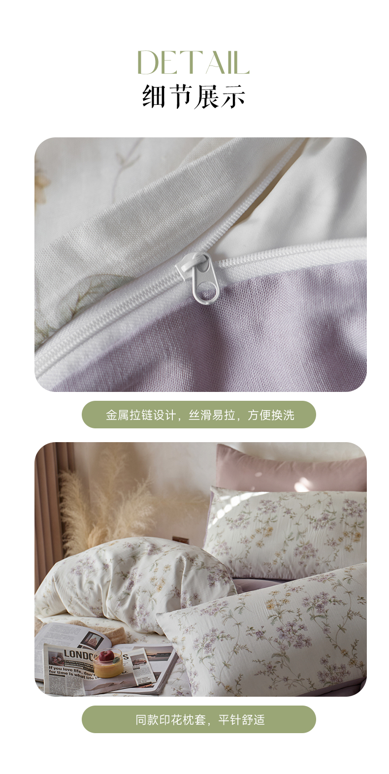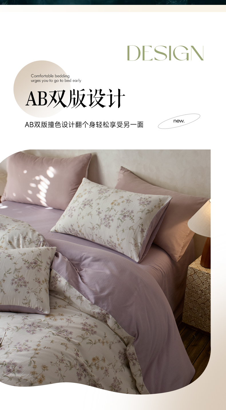 (总)时年家纺 2025新款全棉有氧双层纱系列套件 充值会员优惠5元/套,春日,清辞